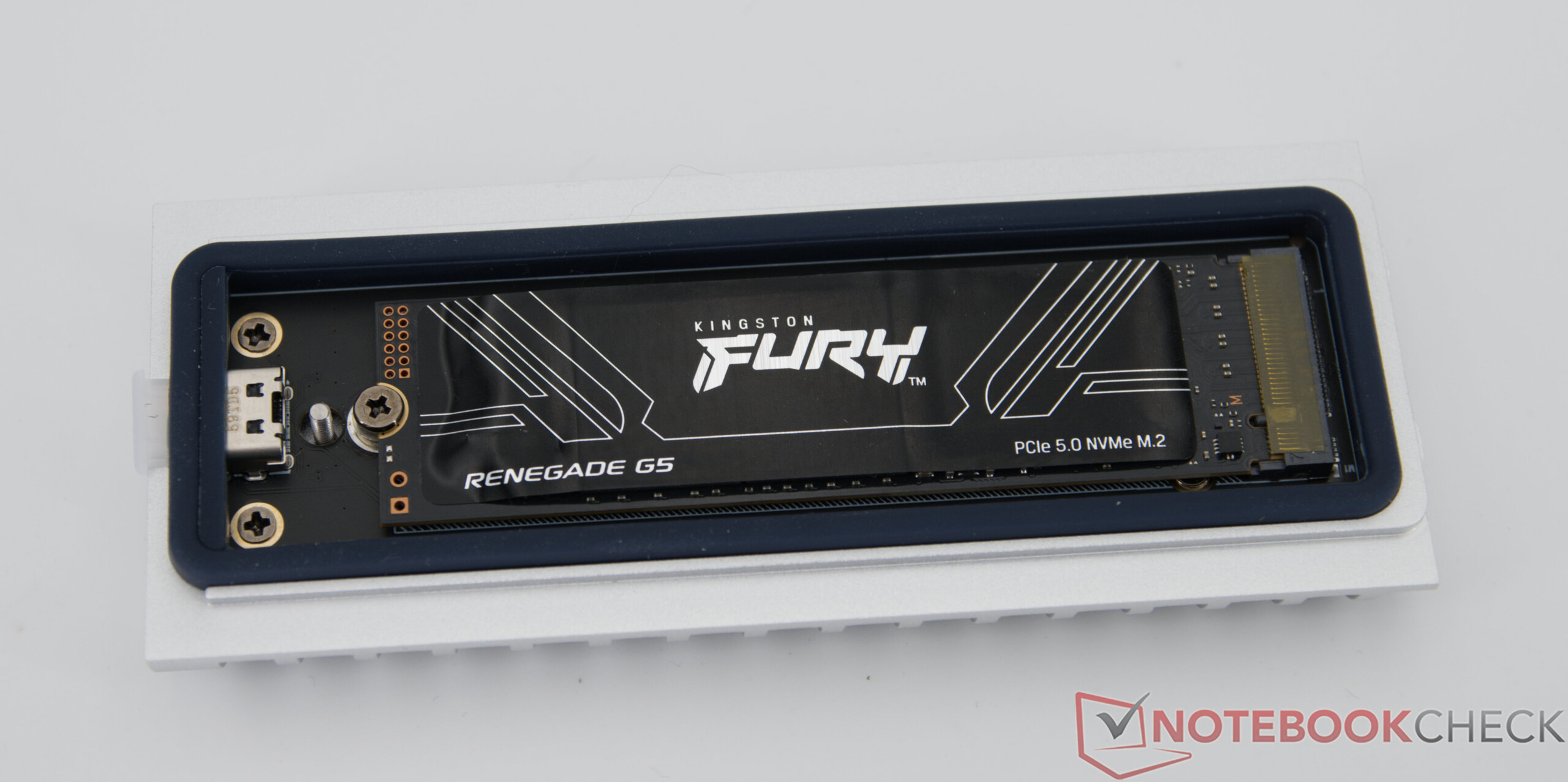 La plataforma de pruebas es el Minisforo MS-02 Ultraque ofrece las condiciones ideales para conectar rápidas soluciones de almacenamiento externo gracias a sus modernos estándares de interfaz. Para esta revisión, la caja externa está equipada con el Kingston Fury Renegade G5 de 8 TB, actualmente una de las unidades SSD de consumo más potentes del mercado.