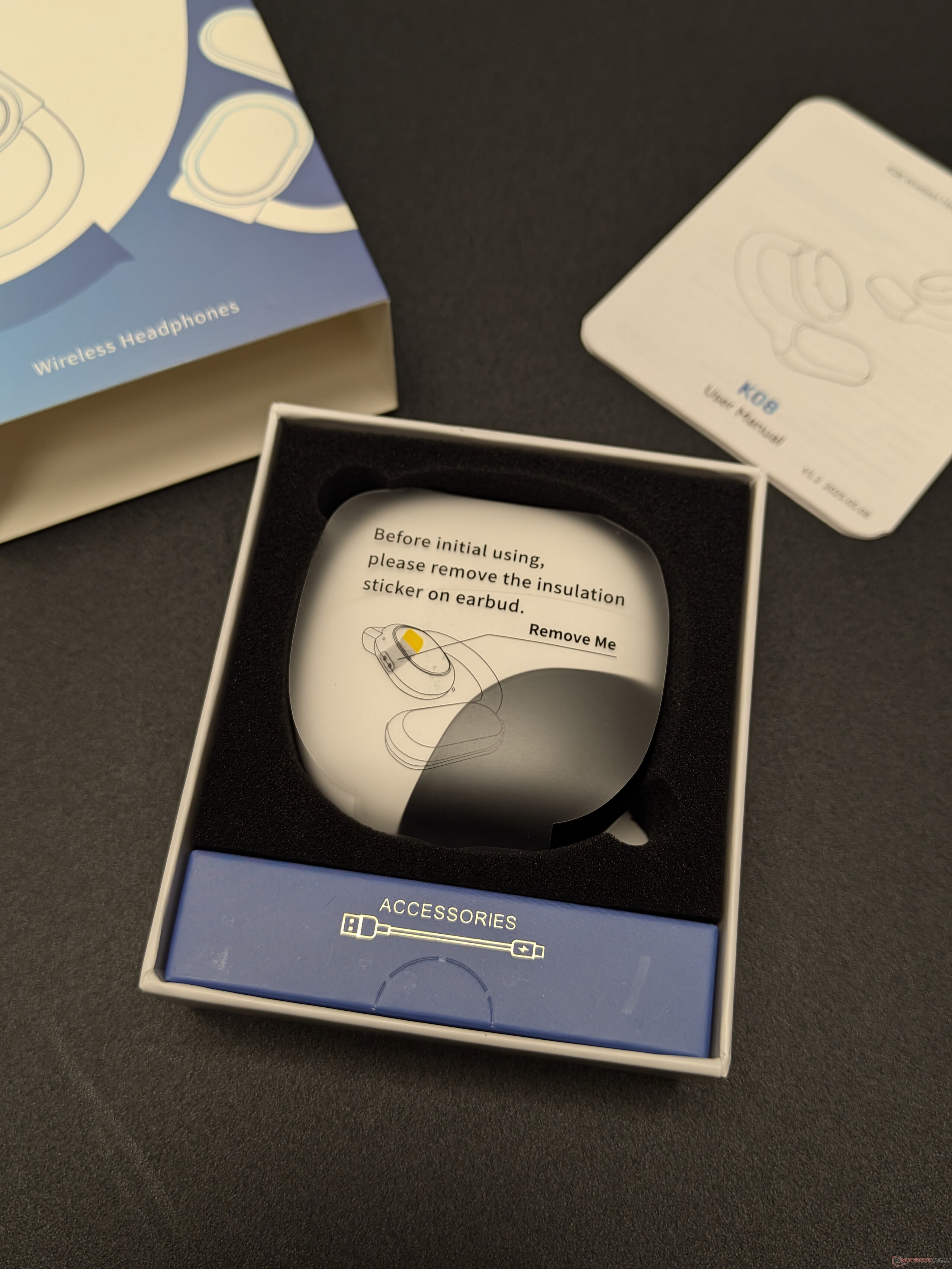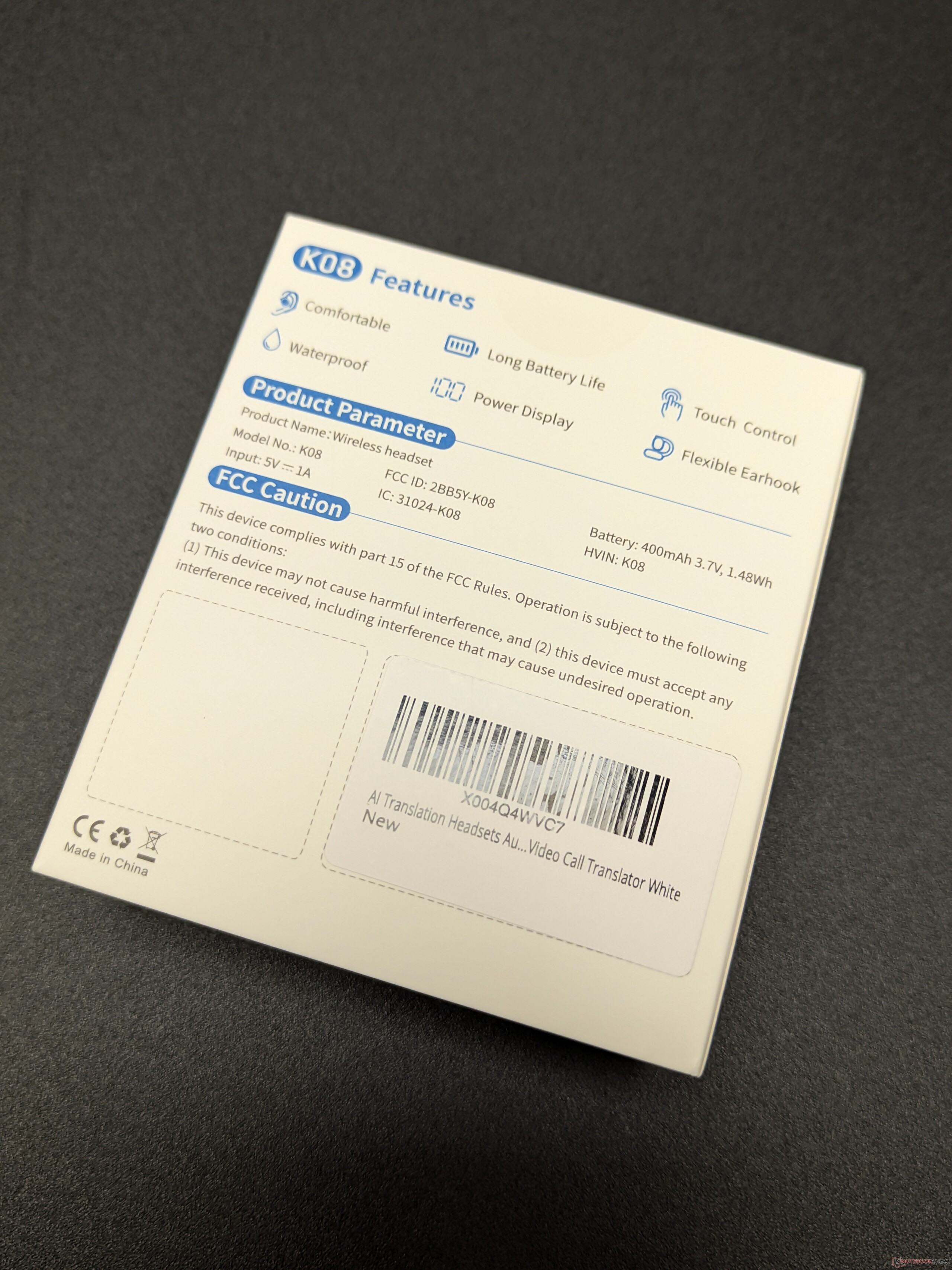 Al igual que ocurre con otros accesorios de audio económicos, la experiencia de desembalaje es sencilla. La unidad llega con un estuche de carga, instrucciones y un cable USB. En particular, la atención se centra inmediatamente en la aplicación complementaria, necesaria para desbloquear la funcionalidad de traducción del K08.