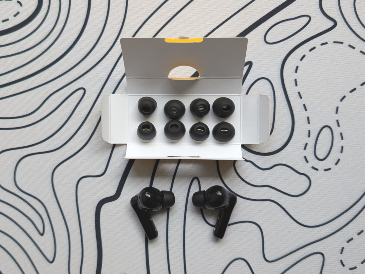 Unboxing sencillo y directo, los EarFun Air Pro 4+ vienen con el estuche de carga compacto, tapones para los oídos de diferentes tamaños y un pequeño cable de carga USB Tipo-C. Es una ventaja que EarFun incluya pares de tapones extrapequeños y extragrandes junto con los pequeños, medianos y grandes.