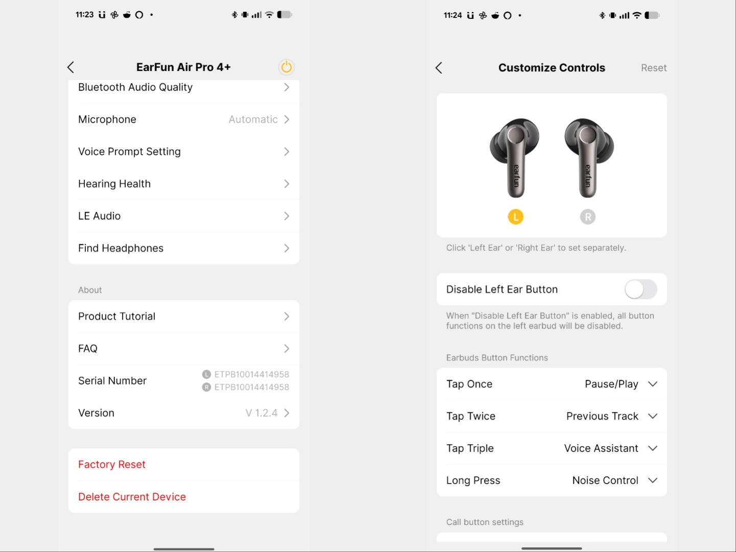 Los propios auriculares tienen controles táctiles en la parte superior del vástago y funcionan bien. Con los auriculares intrauditivos extrapequeños, pude conseguir un ajuste ceñido sin que se salieran constantemente. A algunas personas les cuesta mantener fijos en su sitio los auriculares de estilo intrauricular (entre las que me incluyo) y, aunque en mi caso el problema fue poco frecuente con los EarFun Air Pro 4+, puede que la experiencia sea diferente para otras personas. Una vez en su sitio, son lo suficientemente ligeros y cómodos como para no molestar en los oídos cuando se llevan durante periodos prolongados.