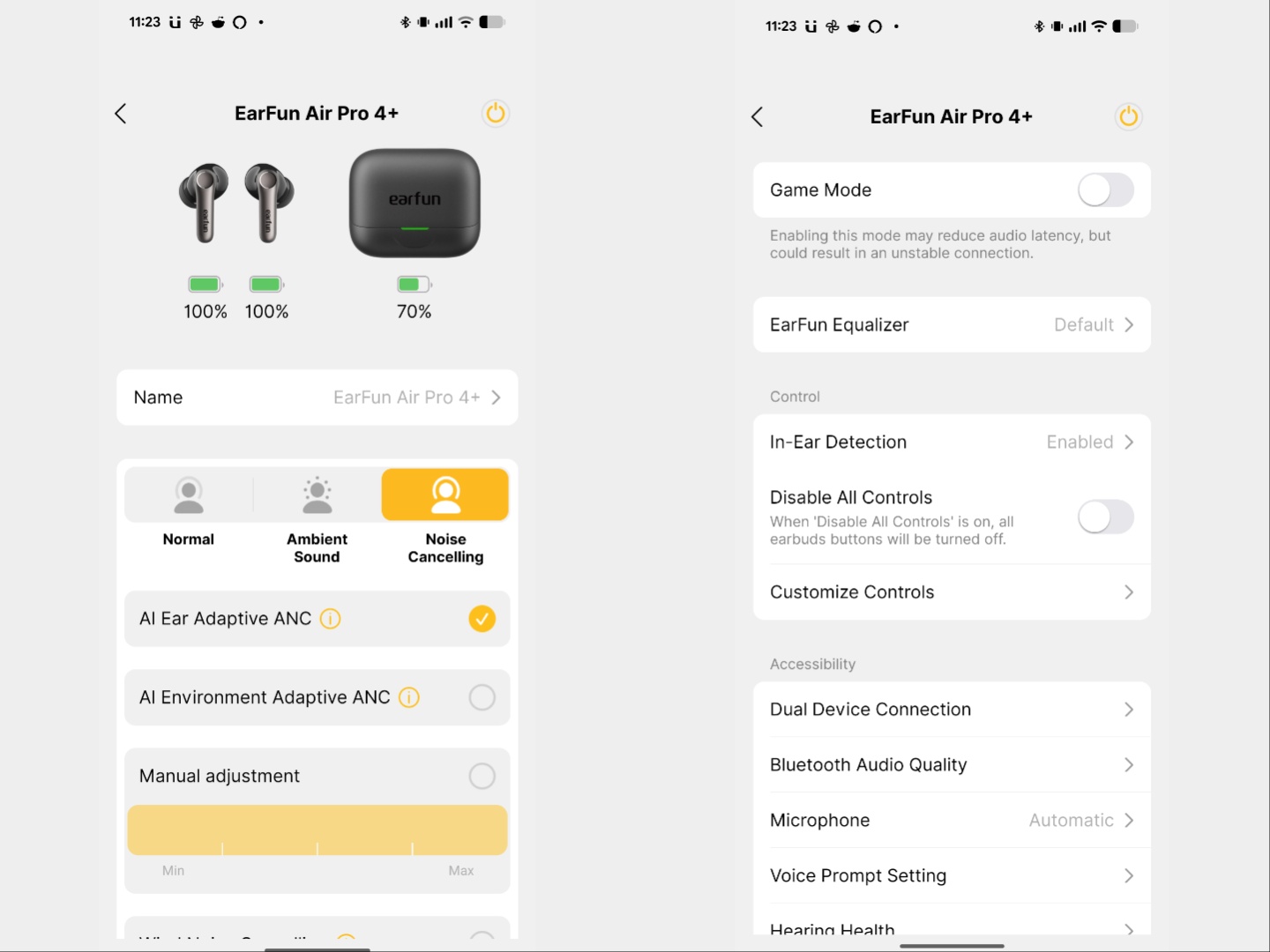 Empezando por la experiencia de emparejamiento, la EarFun Air Pro 4+ es compatible con Google Fast Pair, por lo que al abrir la funda o pulsar el botón de la parte inferior con la funda abierta aparece una ventana emergente para conectarse en el teléfono Android cercano. A partir de ahí, tras el emparejamiento, sugiere descargar la aplicación y la experiencia en general es fluida. Recomendamos actualizar inmediatamente al último firmware.