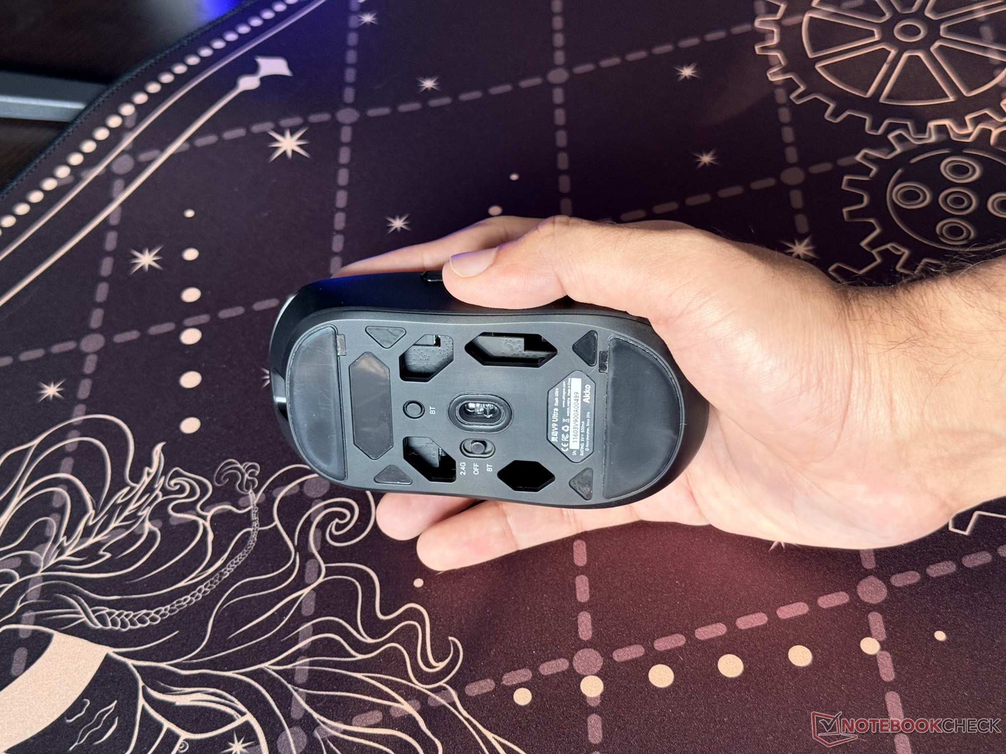 Como destaca Akko, la versión negra del ratón para juegos, que tengo aquí para la revisión, pesa tan sólo 40 gramos, mientras que la versión blanca pesa alrededor de 41 gramos. La parte inferior abierta y el menor tamaño contribuyen a este diseño ligero.