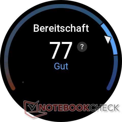 En "Preparación", el smartwatch ofrece una visión general del supuesto nivel de energía basado en los datos medidos relativos a la frecuencia cardiaca, la SpO2, el sueño y el estrés. Si valores como la recuperación física o mental no se encuentran en la zona verde, el Amazfit Balance emite una advertencia. También se mide la temperatura de la piel. El wearable también puede determinar el VO2máxpara diversos tipos de deporte.