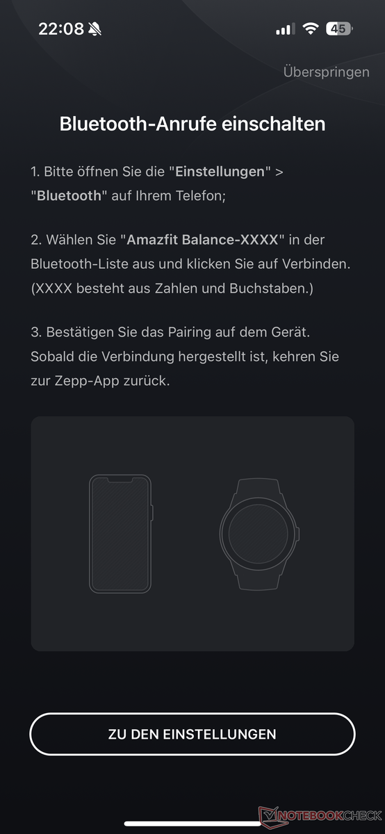 La Amazfit Balance puede utilizarse en combinación con un smartphone que ejecute Android o iOS. La aplicación gratuita Zepp debe estar instalada en el smartphone para poder establecer una conexión con el wearable. Para ello, es necesario registrarse o iniciar sesión en una cuenta Zepp existente.
