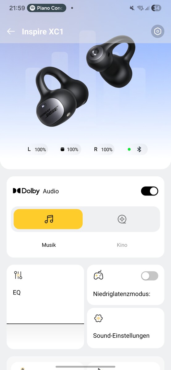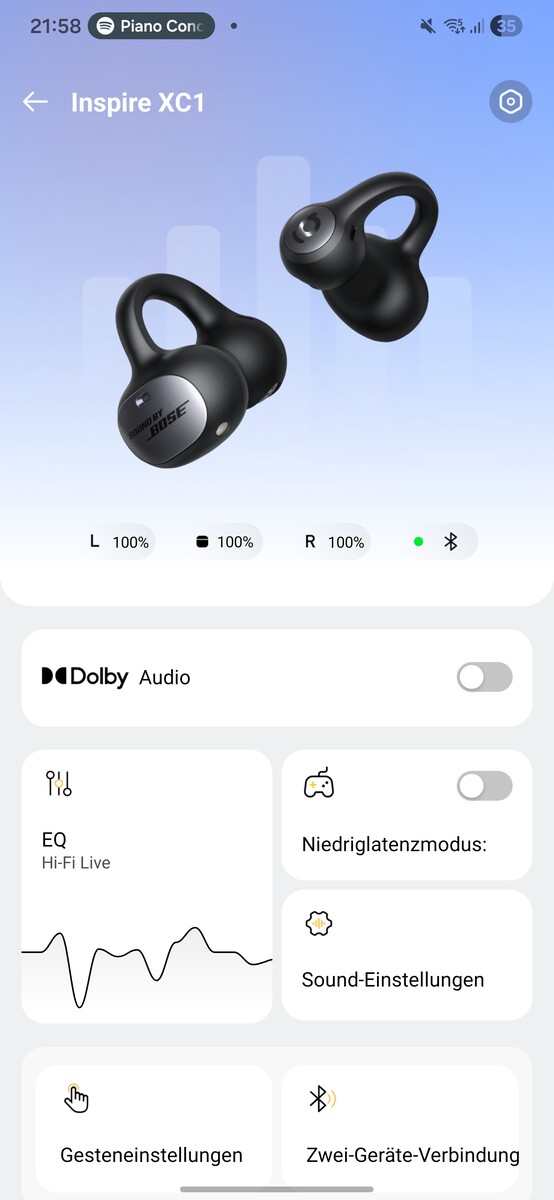 Con los Inspire XC1, Baseus ofrece unos auriculares de ajuste abierto con una calidad de sonido muy buena. Su gran capacidad de ajuste en diferentes estilos musicales es especialmente impresionante. "Sonido Bose" es simplemente un preajuste del ecualizador, pero los XC1 también ofrecen conectividad multipunto, Dolby Audio y LDAC. Por desgracia, estas opciones de sonido no pueden utilizarse al mismo tiempo.