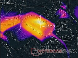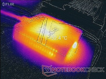 Las temperaturas de la superficie son generalmente más cálidas que en la mayoría de los otros mini PCs ya que el NucBox 3 no tiene ventilador interno. Cuando se ejecutan cargas altas durante períodos prolongados, la superficie superior puede llegar a calentarse hasta 50 C en comparación con sólo 30 C en el Beelink GTR5. Tendrás que tener cuidado con los objetos o libros que coloques encima del mini PC GMK.