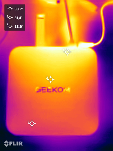La carcasa del Geekom GT1 Mega sólo se calienta ligeramente en reposo. Gracias al ventilador de giro rápido, el calor generado se disipa inmediatamente de la carcasa, lo que se traduce en bajas temperaturas superficiales incluso bajo carga.