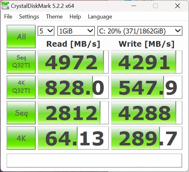 | Connectivity - USB 3.x / USB4 / TB - AS SSD Seq Read Test (1GB) | |