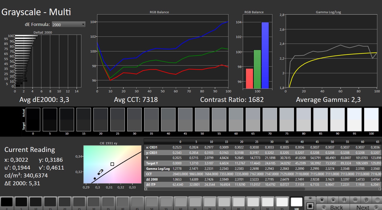 ΔE Greyscale Calman: 4.24 | ∀{0.09-98 Ø5}