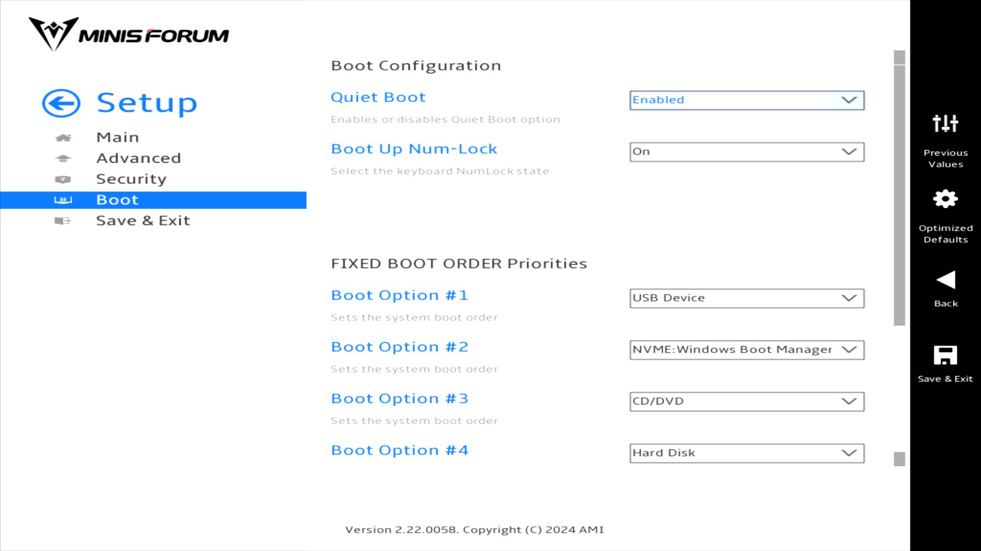 Realizamos todas las pruebas relevantes para la evaluación en el estado de suministro del dispositivo, es decir, con un límite de potencia preestablecido en modo equilibrado. En el modo de rendimiento, el Minisforum concede al procesador algo más de potencia, hasta 70 vatios, que puede ajustarse en la BIOS.