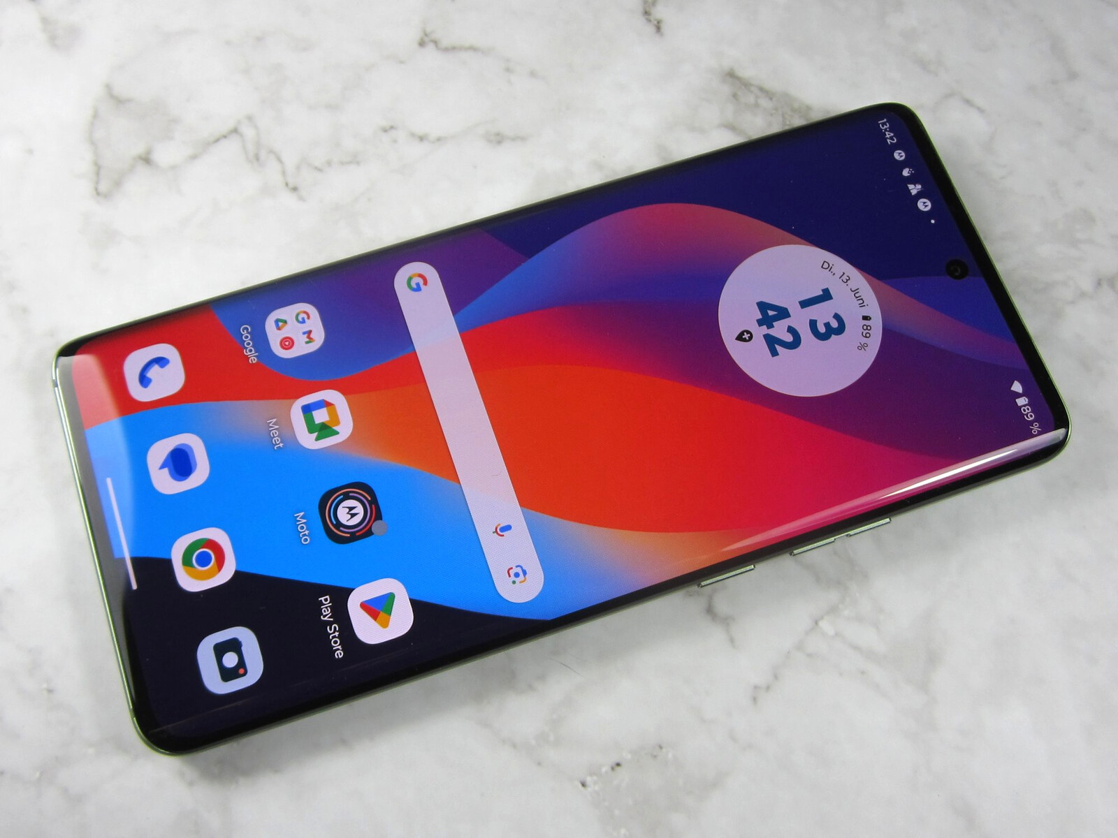 El sensor de huellas dactilares del Edge 40 está situado bajo la pantalla, detecta los dedos escaneados de forma fiable y desbloquea el smartphone muy rápidamente. El desbloqueo por reconocimiento facial también funciona prácticamente sin demora. Dado que la autenticación se realiza mediante software 2D, se requiere un entorno suficientemente luminoso para ello. En entornos oscuros, la luz residual de la pantalla suele ser suficiente para el desbloqueo facial.