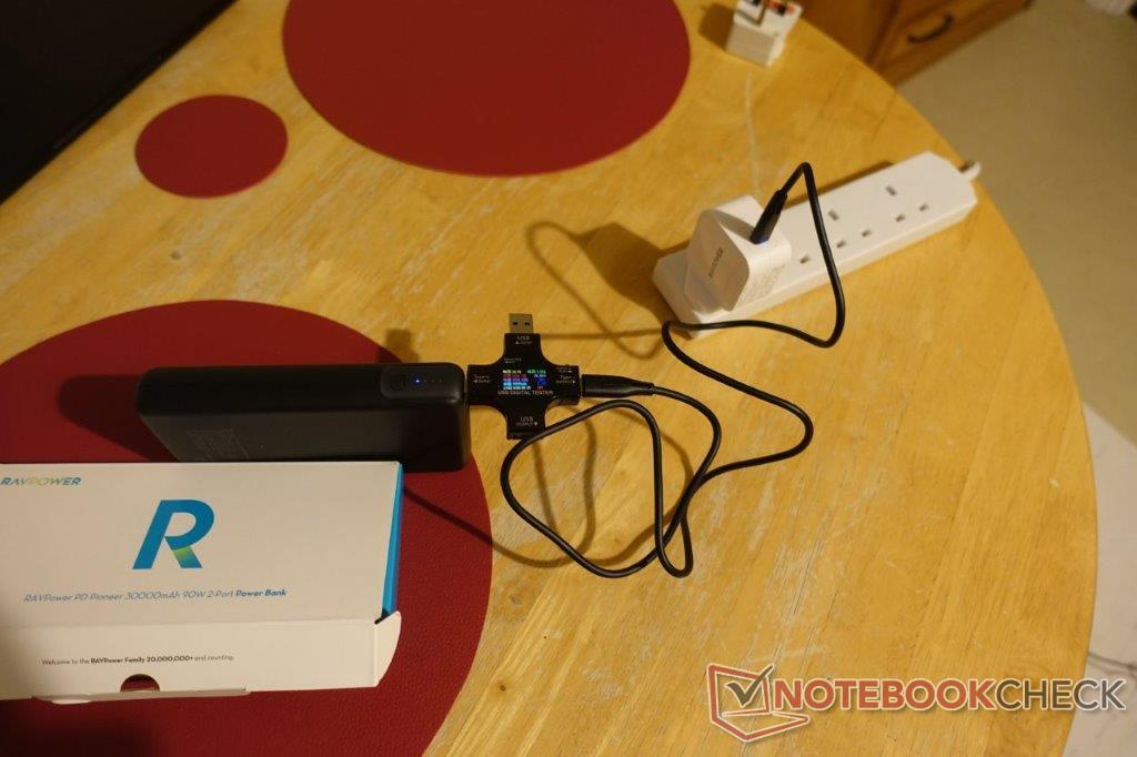 En cuanto a la carga, RAVPOWER afirma que el nuevo banco de energía PD Pioneer puede hacerlo hasta 20V/3A, o 60 vatios (W) a través de su puerto USB tipo C. Al conectarlo a un cargador adecuado se comprueba que efectivamente se carga casi exactamente a esa velocidad, y que tarda unas 2,5 horas en pasar de 0 a 100% en esas condiciones.
