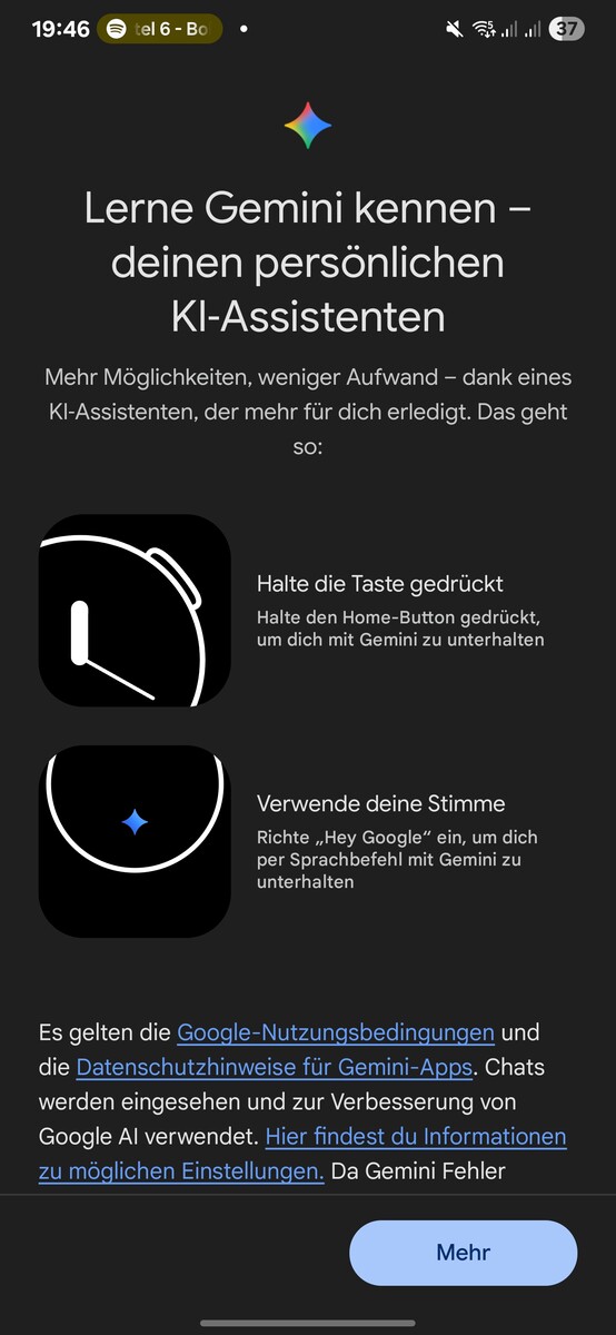 Durante la configuración, los usuarios pueden configurar opciones clave como el botón rápido, la detección de caídas y la orientación de la muñeca. Al final del proceso aparece un breve tutorial tanto para la aplicación como para el reloj, y el asistente de voz Gemini de Google también hace un cameo durante la configuración.