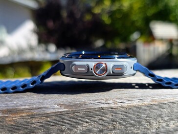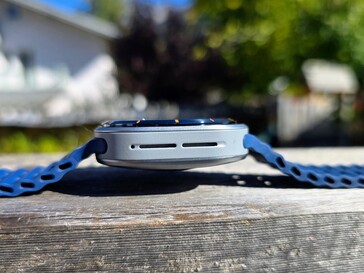 El Watch Ultra es el modelo más grande de la gama de smartwatches de Samsung. Con 47 milímetros de diámetro, es el más ancho - y especialmente cuando se compara con el Watch8destaca su considerable grosor. El aspecto fornido se acentúa aún más con una correa de 24 milímetros con doble cierre.