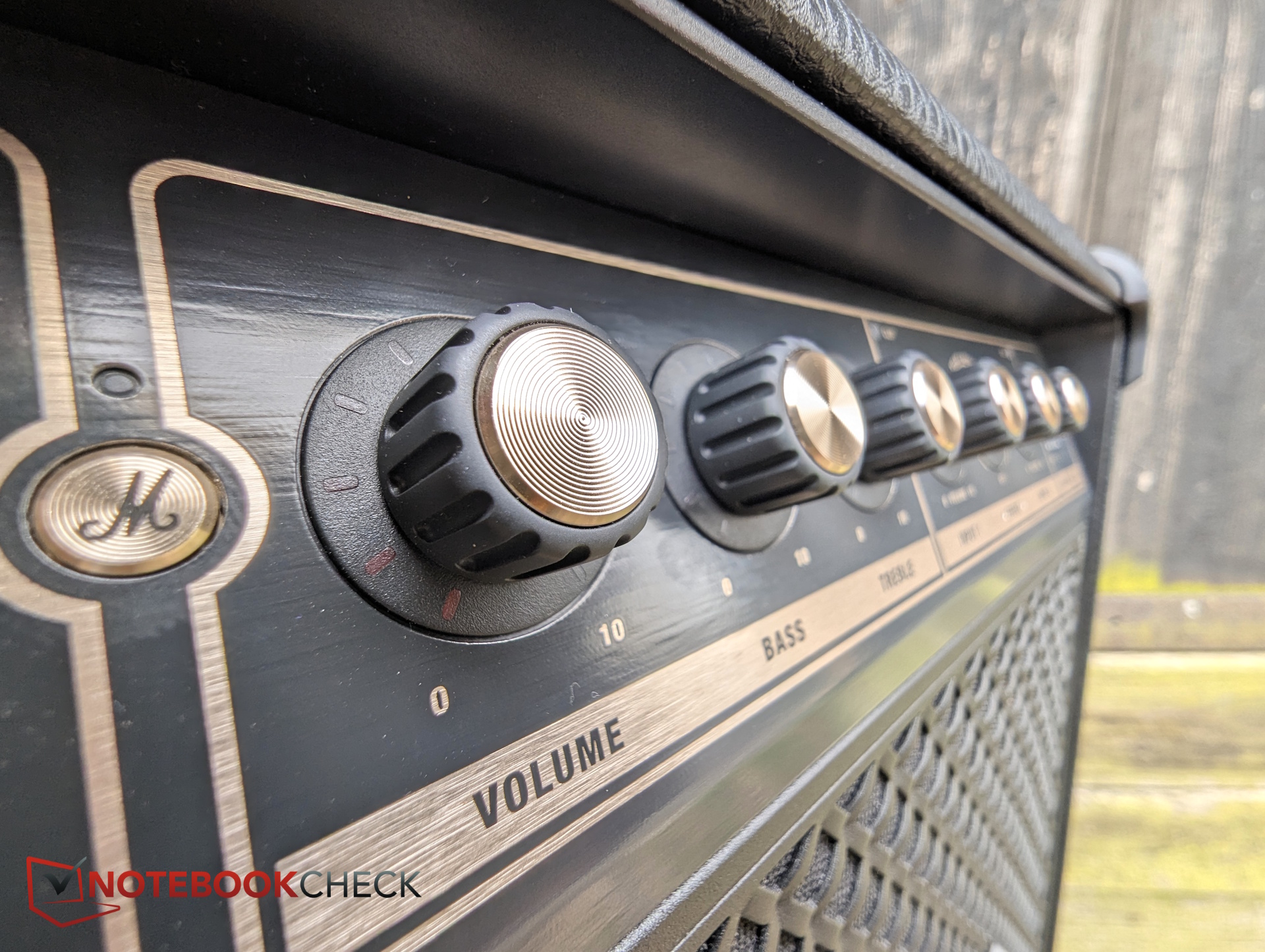 Para tratarse de un altavoz Marshall, el rango de ajuste de los graves a través del mando es algo limitado. Rara vez sentimos la necesidad de bajarlo significativamente y, en algunas pistas, en realidad queríamos un poco más de graves sin sacrificar los agudos, especialmente a volúmenes bajos y medios. Los agudos, por otra parte, siguen siendo claros cuando se potencian sin llegar a ser ásperos.