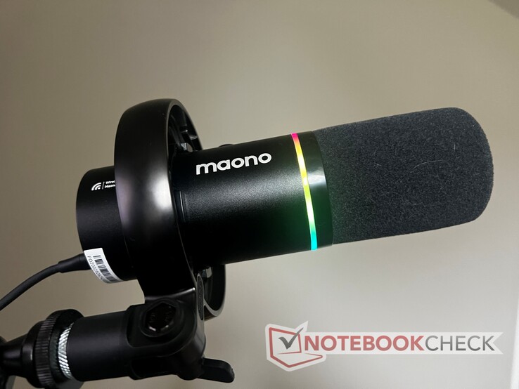 Hay un anillo de luz RGB alrededor de la base de la cápsula que puede ajustarse a cualquier color del espectro RGB a través de la aplicación móvil Maono. También puede configurarse en un patrón "arco iris", en el que varios colores giran alrededor del anillo y dan al micrófono un cierto toque estético.