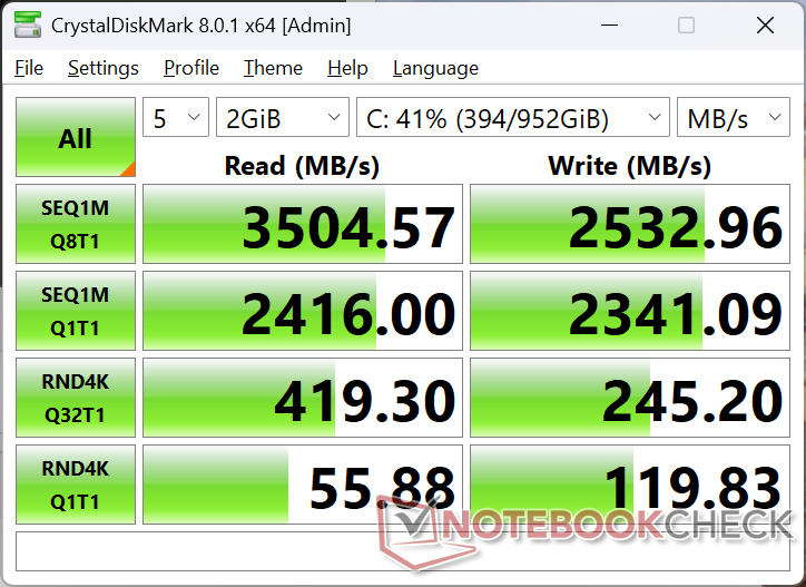 El Ryzen 7 7735HS puede estar envejeciendo, pero el rendimiento bruto del procesador sigue siendo decente con resultados comparables a los del más reciente Core Ultra 5 125H o aproximadamente entre un 20 y un 25 por ciento más rápido que el más eficiente Core Ultra 7 256V. Tenga en cuenta que a diferencia de muchas CPU más recientes, el Ryzen 7 7735HS carece de una NPU integrada necesaria para las funciones de IA local como Co-Pilot+.