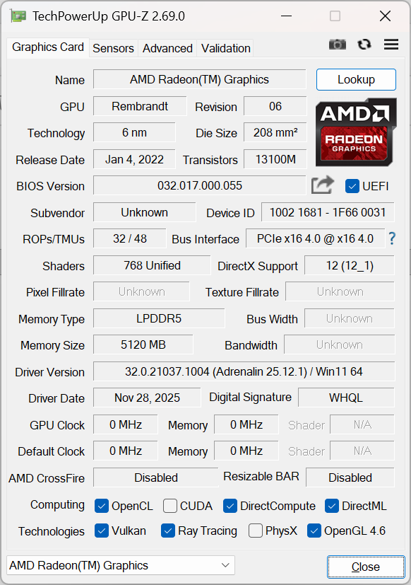 | Medio AMD Radeon 680M (7.41 - 9.53, n=4) | |