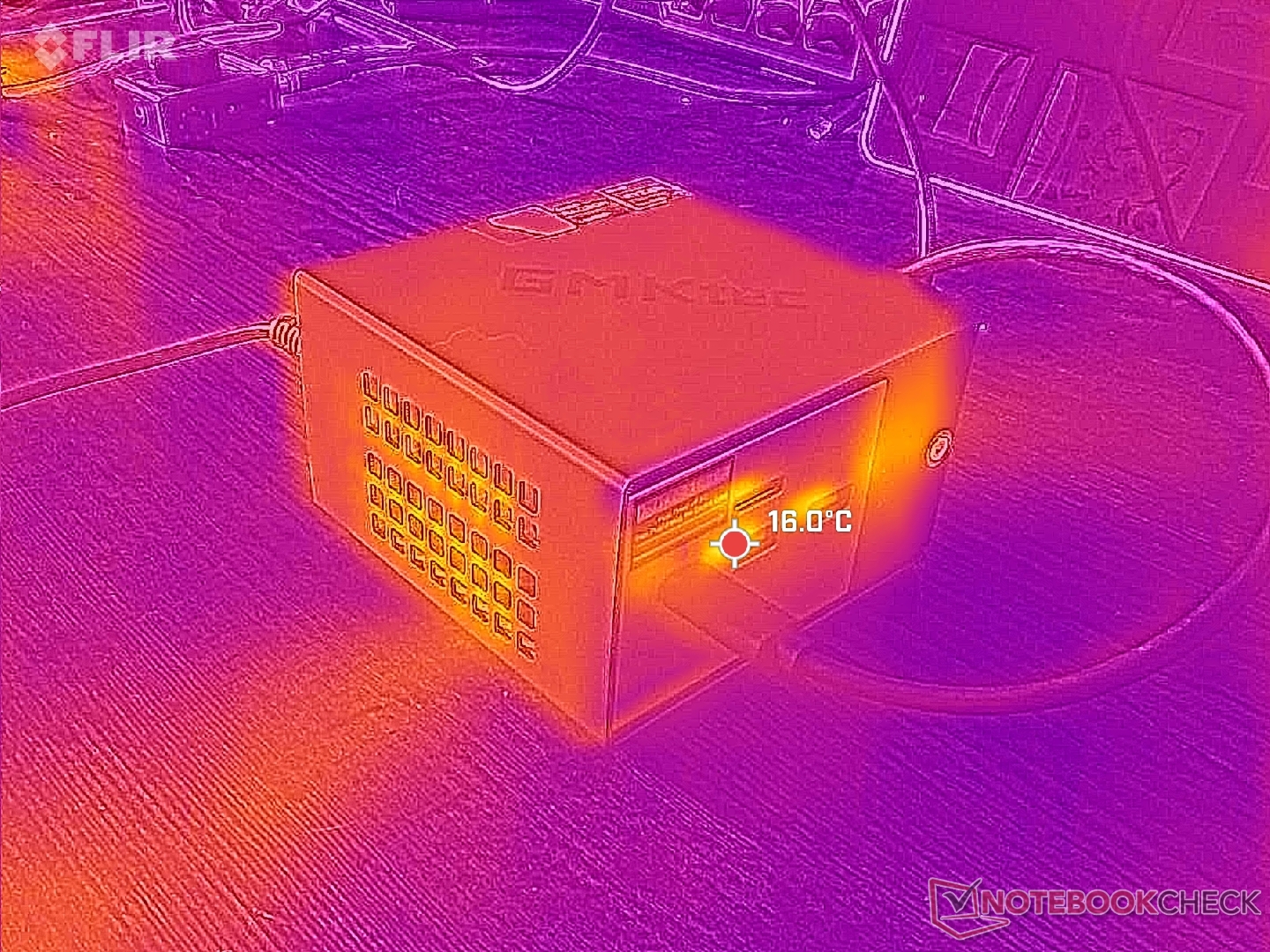 El consumo de energía es donde el sistema Zen 3+ empieza a mostrar su edad. Al jugar, el sistema consume casi 70 W, es decir, el doble que el NucBox K13 alimentado por Lunar Lake, a pesar de que este último ofrece entre un 60 y un 90 por ciento más de rendimiento gráfico. Del mismo modo, al ejecutar Prime95, el NucBox K16 demandaría más del doble de potencia por sólo un mediocre aumento del 20 por ciento en el rendimiento del procesador.