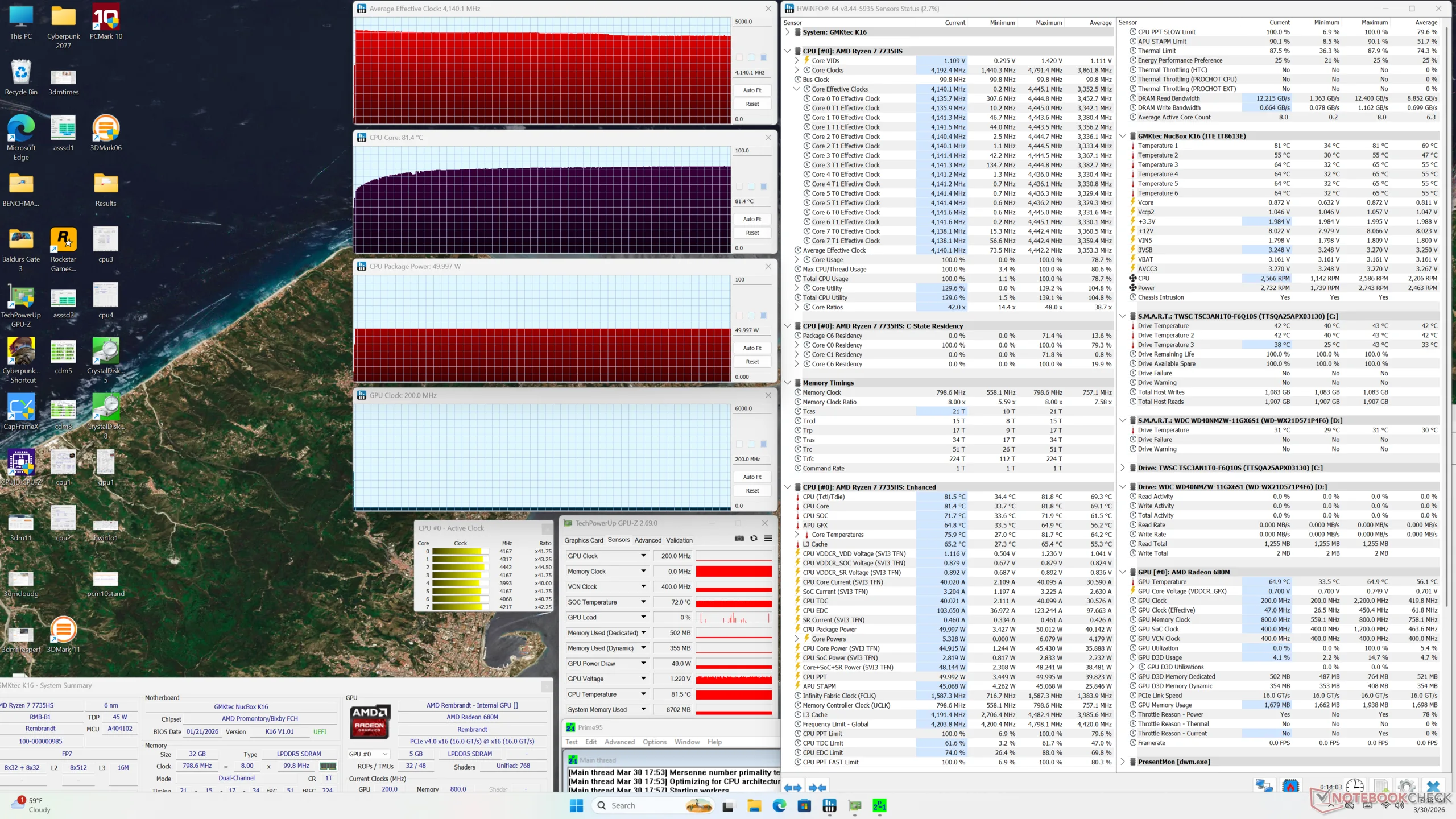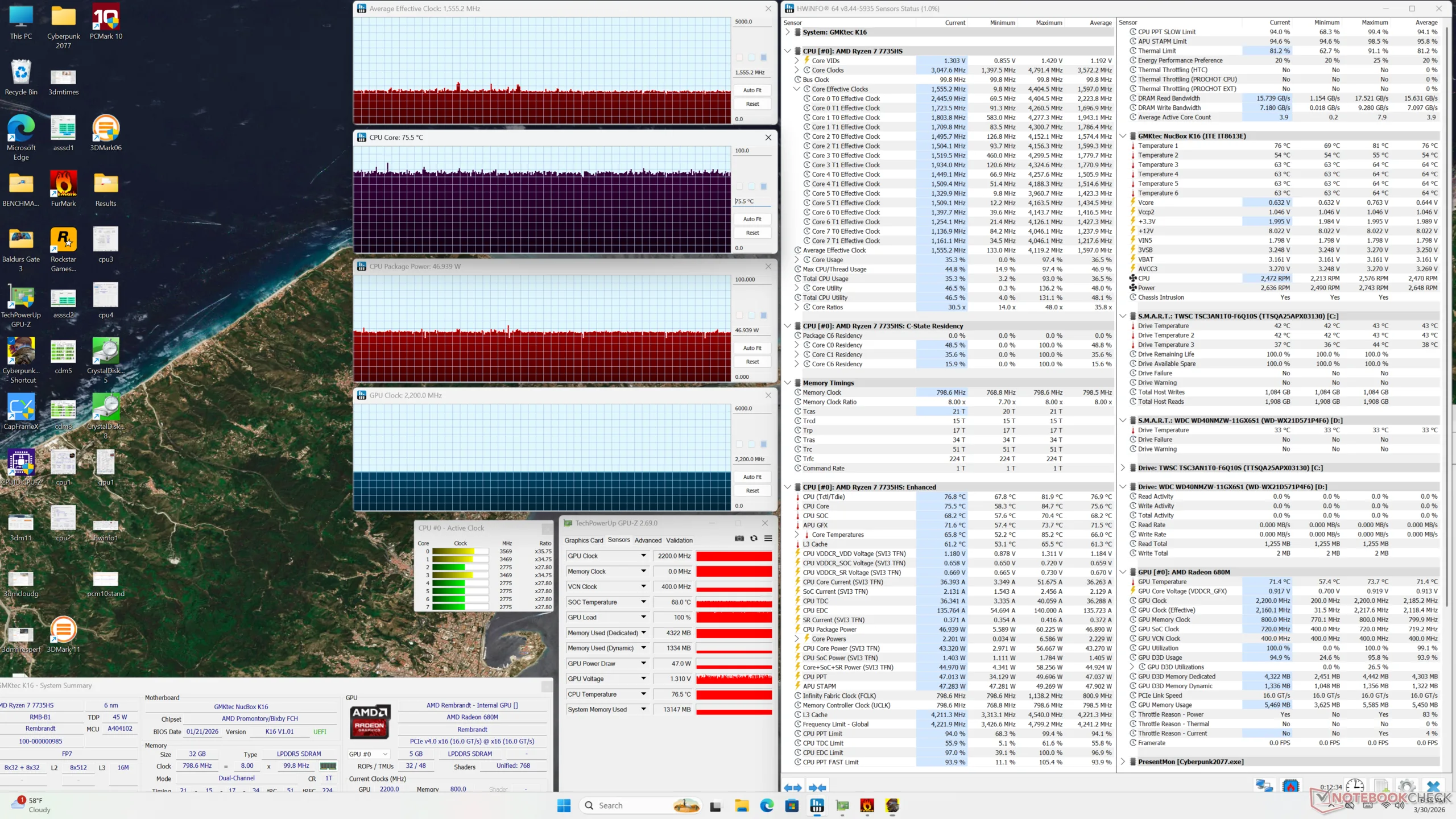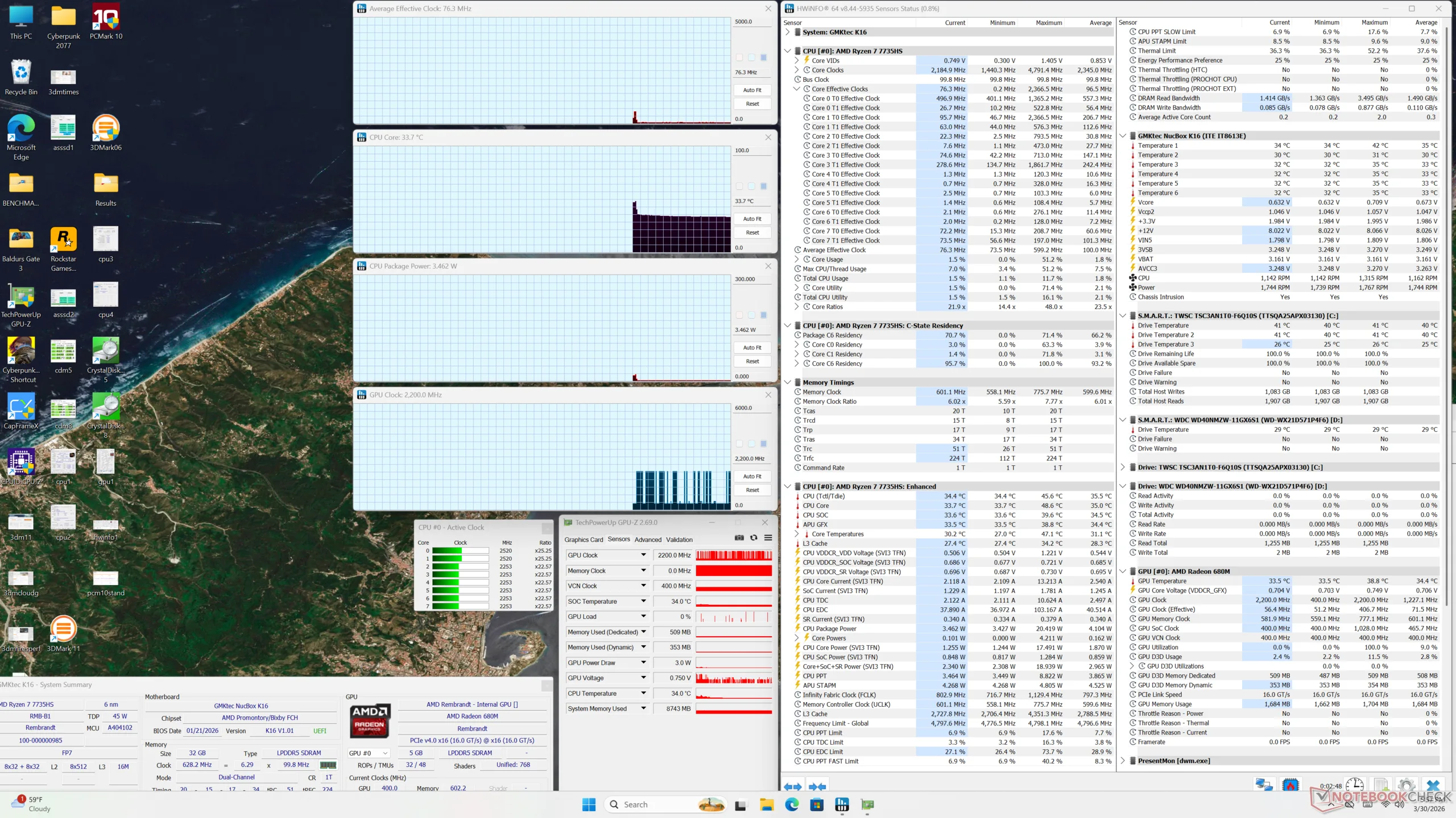 Ese mismo procesador Zen 3+ es también responsable de muchos inconvenientes del sistema. La anticuada CPU muestra sus limitaciones cuando se analiza el consumo de energía, ya que el rendimiento por vatio no es ni de lejos tan alto como el de algunas de las últimas alternativas de Intel, incluida la propia GMK NucBox K13. El rendimiento gráfico también es más lento que la media incluso para una solución integrada.