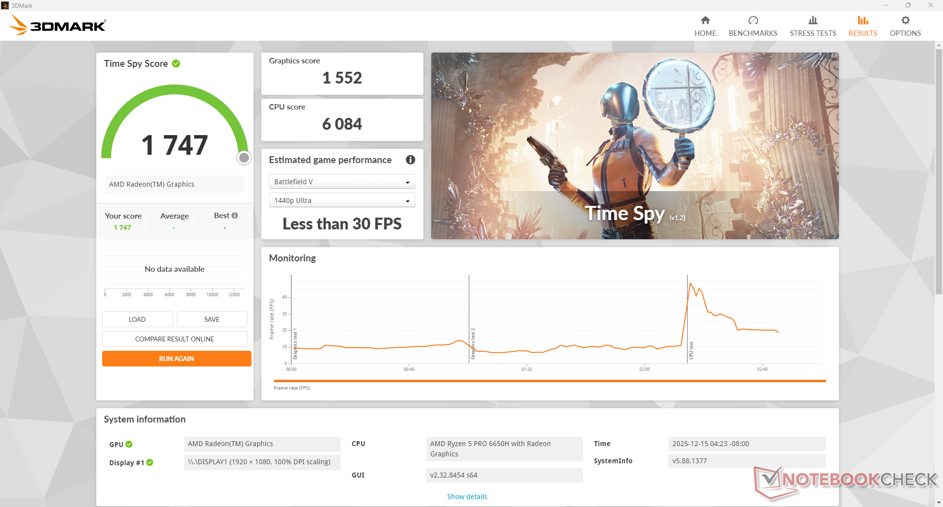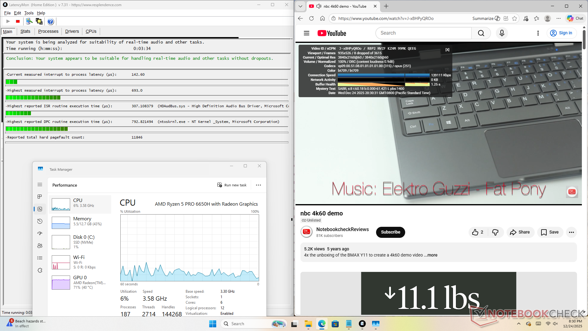 A pesar de funcionar sobre la antigua plataforma Zen 3+, el Ryzen 5 Pro 6650H sigue siendo capaz de enfrentarse codo con codo con el más reciente Core Ultra 7 258V cuando se trata de cargas multihilo. No obstante, se queda atrás en la mayoría de las demás pruebas comparativas que implican un solo núcleo, gráficos o IA.