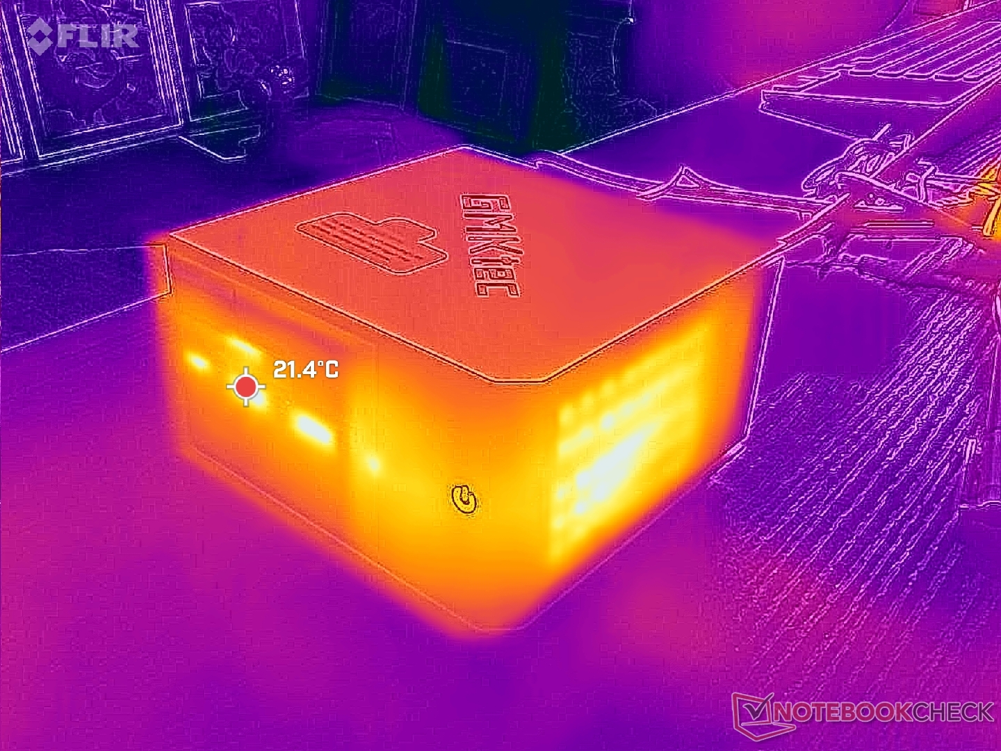 Las temperaturas superficiales no son un problema, ya que la carcasa exterior casi no entra en contacto con los componentes interiores. Sin embargo, asegúrese de que el flujo de aire es claro a lo largo de los lados inferior y derecho del chasis.