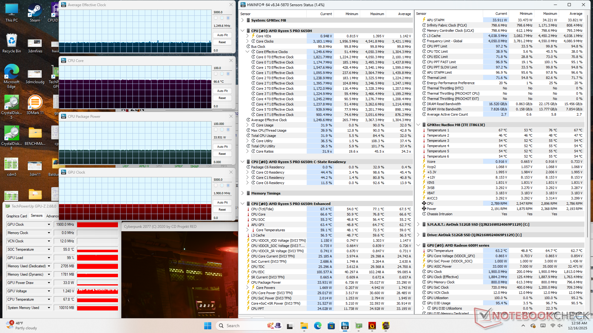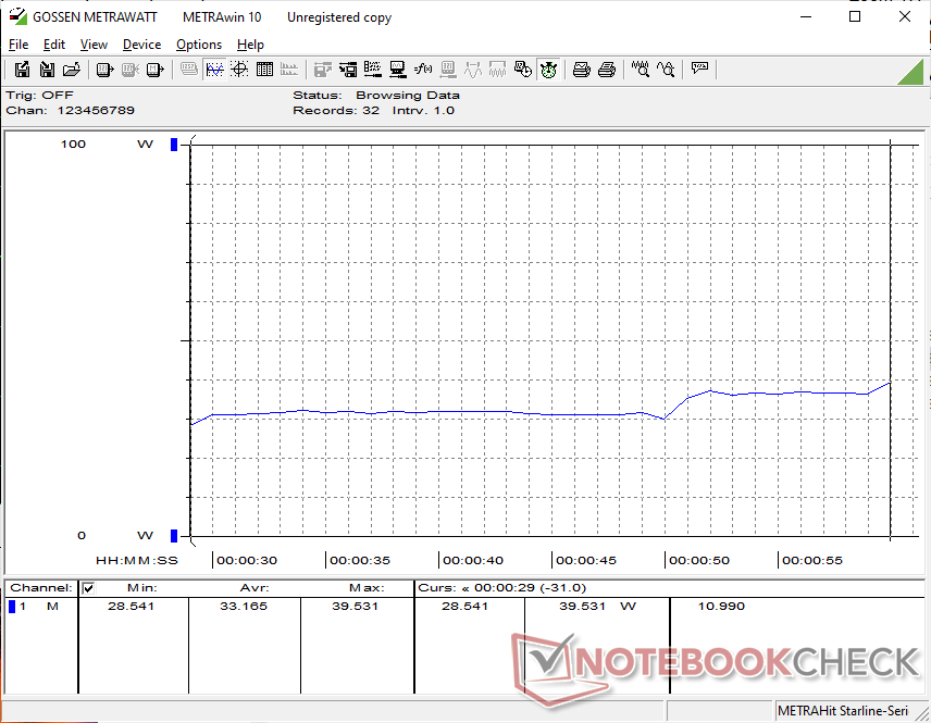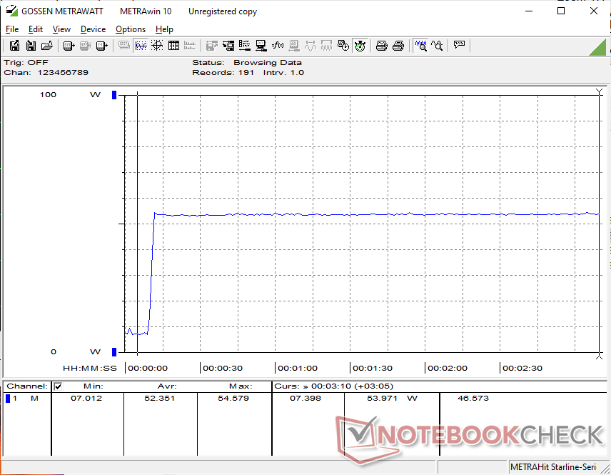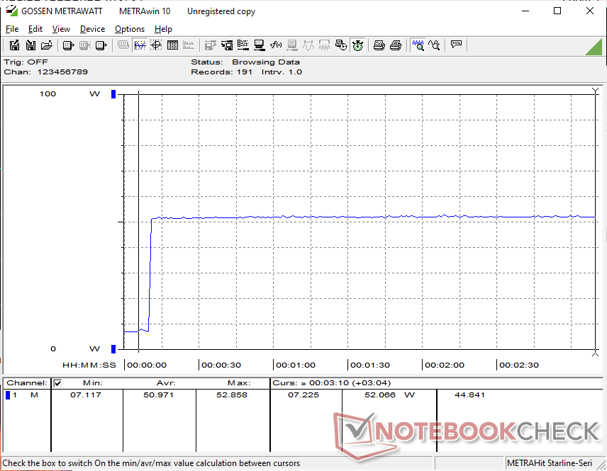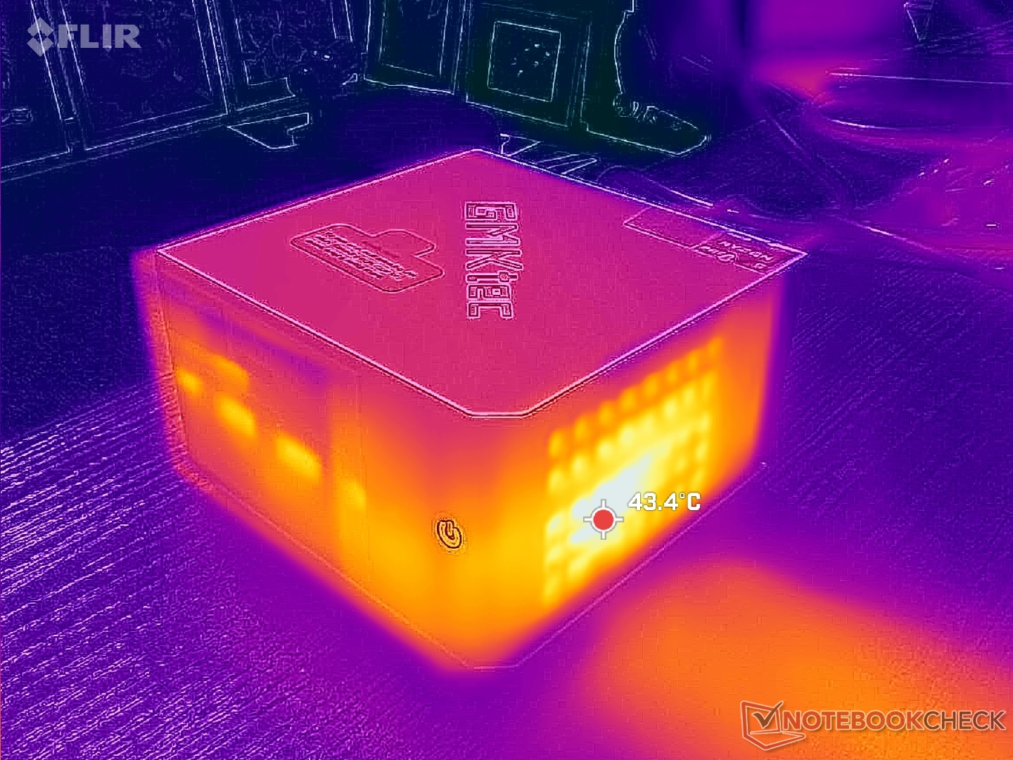 El consumo total es superior al del MSI Cubi NUC AI+ 2MG equipado con el Core Ultra 7 258V más nuevo y eficiente. El rendimiento por vatio es relativamente débil desde la arquitectura Zen 3+.