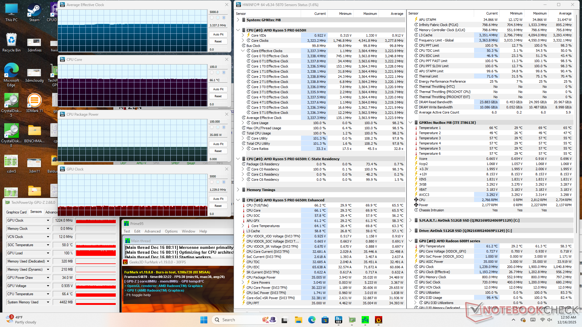 | Prime95 + FurMark Stress | 3.3 | 1239 | 66 |