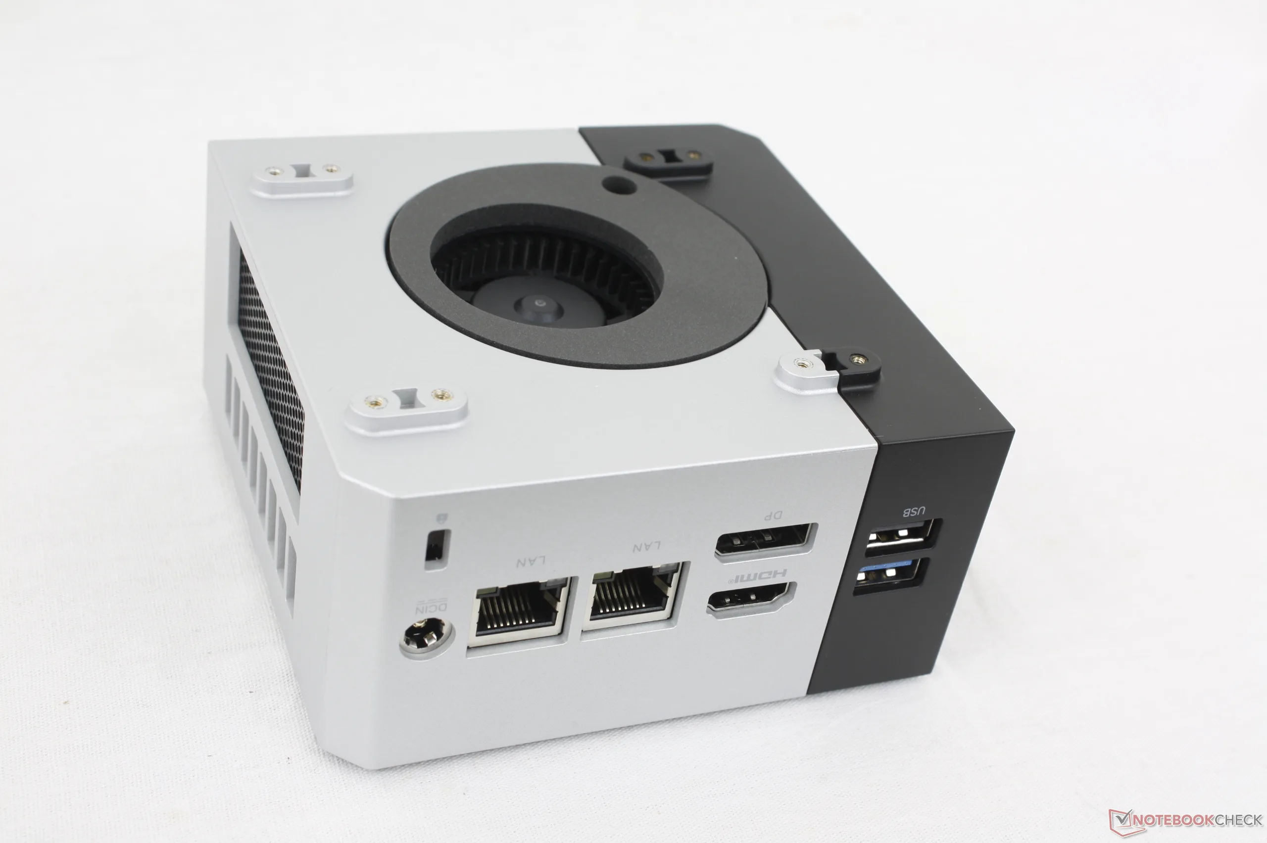 La carcasa exterior está asegurada por sólo cuatro tornillos de mariposa para facilitar el mantenimiento, pero sigue siendo necesario un destornillador Phillips para acceder a la placa base. El sistema admite hasta dos unidades SSD M.2 2280 PCIe4 y un módulo WLAN extraíble.