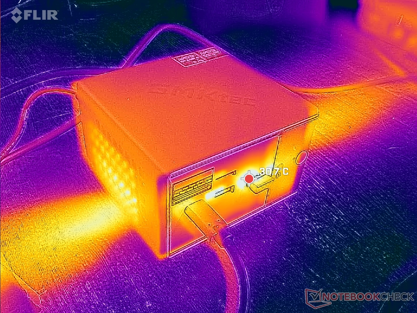 El consumo medio de energía es ligeramente inferior al del Zen 4-powered Beelink SER8 a la vez que proporciona un rendimiento más rápido de la CPU y la GPU para un mayor rendimiento por vatio. Lamentablemente, el GMK sufre problemas de estado de energía cuando está apagado o en modo de reposo como se ha mencionado anteriormente y esto es evidente en nuestras lecturas donde los niveles de consumo oscilaban entre 3 W y 13 W cuando idealmente deberían ser de 2 W o menos.