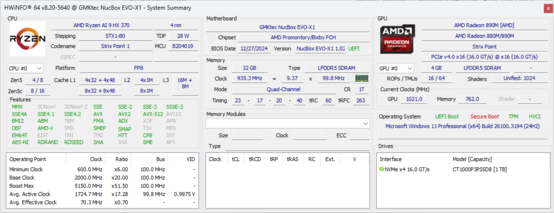 | GMK EVO-X1 AMD Ryzen AI 9 HX 370 ⎘ AMD Radeon 890M ⎘ 32 GB Memoría, 1024 GB SSD | Amazon: $1,049.99 Precio de catálogo: 900 USD | 595 g | 63.2 mm | x | |