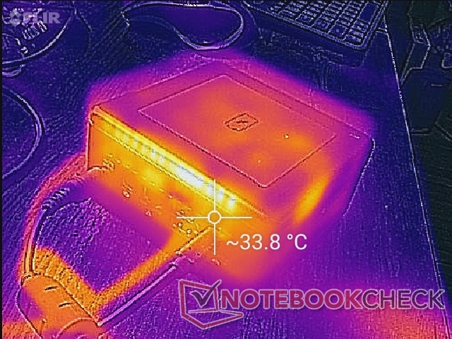 El adaptador de CA puede estar notablemente más caliente que el propio mini PC, a unos 40 C cuando se juega.