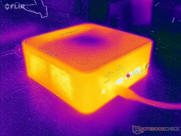 El ruido y las características del ventilador son esencialmente idénticos a los del M1 según nuestras mediciones. Al jugar, el sistema alcanza algo más de 40 dB(A) siendo mucho más ruidoso que el más caro Beelink SER9 pero también más silencioso que el más débil Asus NUC 14 Pro.