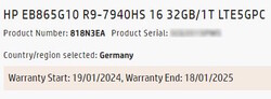 Cuando introdujimos el número de serie en el sitio web de HP, el sistema sólo encontró una garantía de un año. HP ofrece innumerables opciones de garantía ampliada para el portátil que tienen un coste adicional (véase la captura de pantalla).