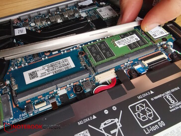 En general, la mayor parte del hardware del interior puede mantenerse o sustituirse, incluidos los ventiladores, la batería, la SSD, la RAM, el adaptador Wi-Fi y el módulo WWAN. Sin embargo, varios componentes se encuentran debajo de escudos metálicos firmemente sujetos, algunos de los cuales están además conectados y asegurados entre sí con cinta adhesiva. Esto dificulta el acceso a los componentes y puede disuadir a algunos usuarios de realizar tareas de mantenimiento.