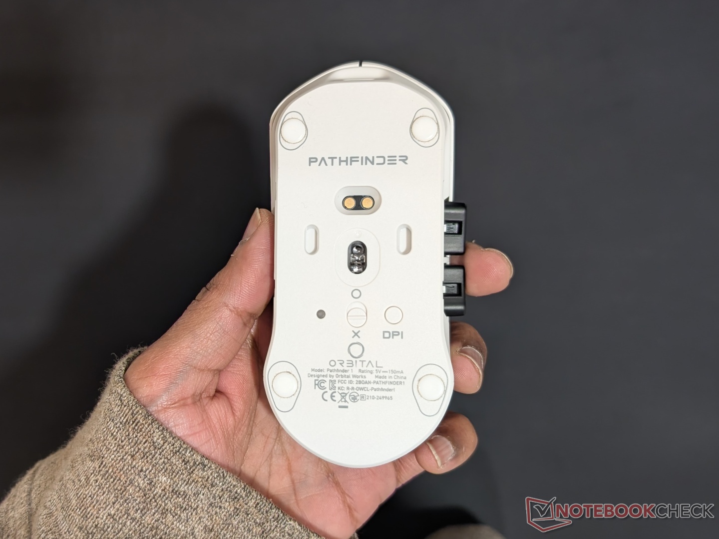 El Core Pathfinder es sólo una media carcasa que alberga los botones y el sensor. Aquellos valientes a los que no les importe la ergonomía pueden utilizarla tal cual, pero eso frustraría todo el propósito de la personalización. Orbital también dispone de carcasas de diferentes colores, por lo que puede cambiar la carcasa base blanca/negra, pero los botones y los accesorios serán blancos o negros. Los módulos y su mecanismo de enganche pueden parecer delicados, pero no tuve ningún problema -roturas o chasquidos- al intercambiarlos. El Pathfinder es un ratón simétrico, pero con un módulo que en cierto modo lo hace ergonómico.