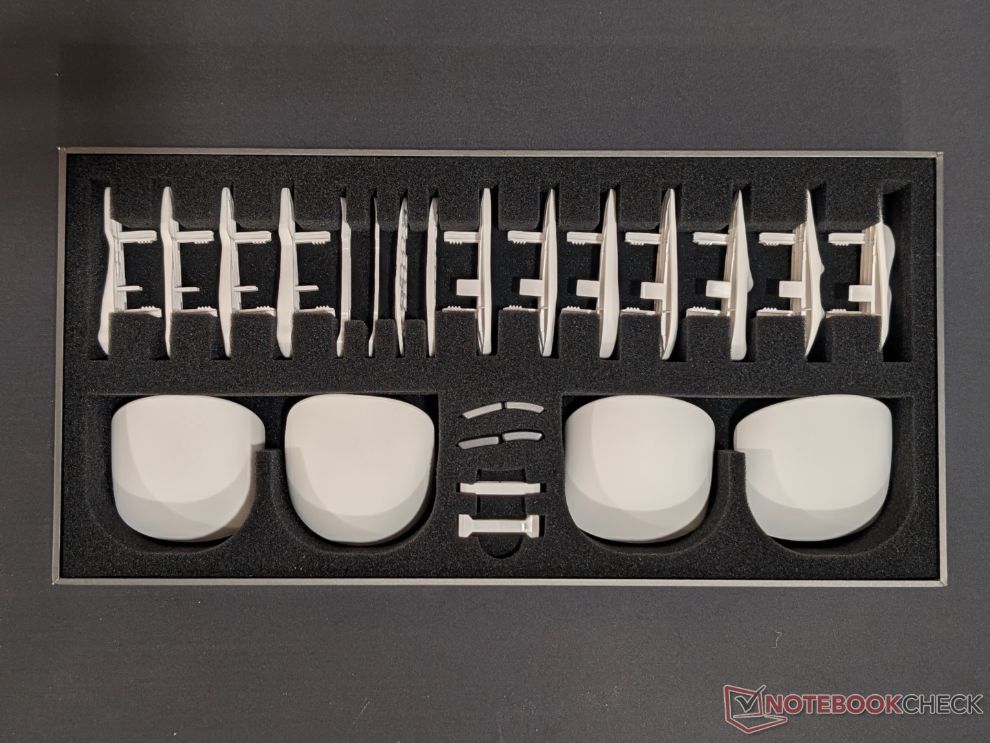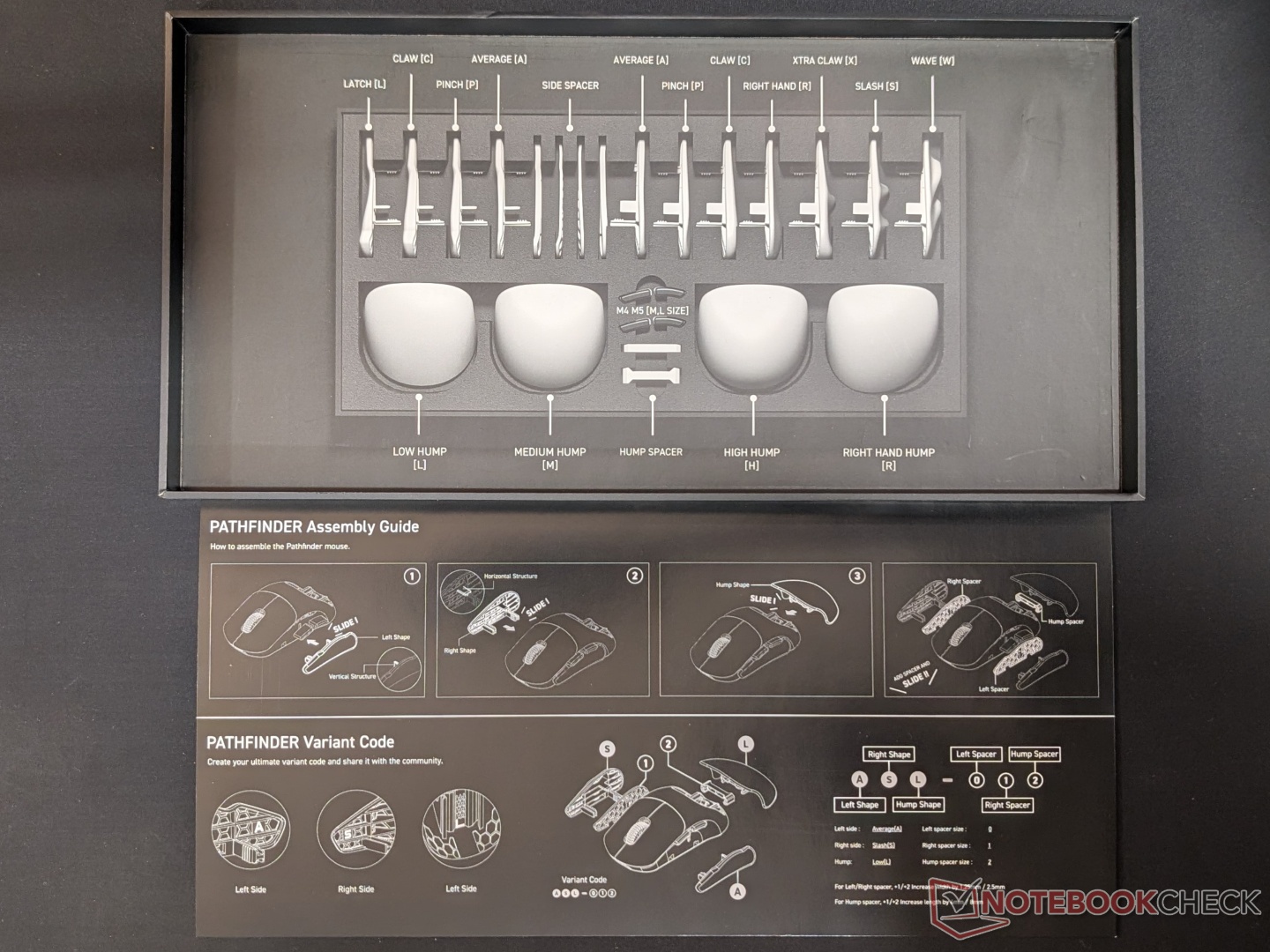 La caja Core y la caja Exploration tienen unas preciosas ilustraciones. La Core incluye el ratón, el receptor 8K, el cable USB Tipo-C y el paquete trío de patines. La Explore Box, por su parte, alberga todos los módulos en recortes de espuma, junto con una práctica guía que actúa como llave para los módulos. No hay nada demasiado especial en la experiencia de unboxing, pero se agradece el uso mínimo de plástico (excepto en el propio ratón).