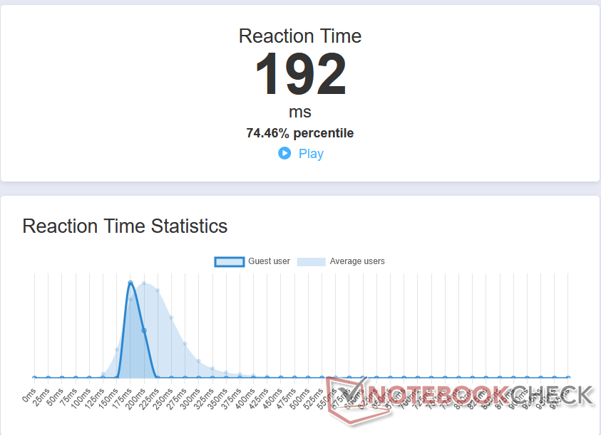 Los tiempos de respuesta con los clics izquierdo y derecho fueron bajos a pesar de que el ratón era inalámbrico. También logramos un tiempo de reacción medio de 192 ms en la herramienta Human Benchmark herramienta.