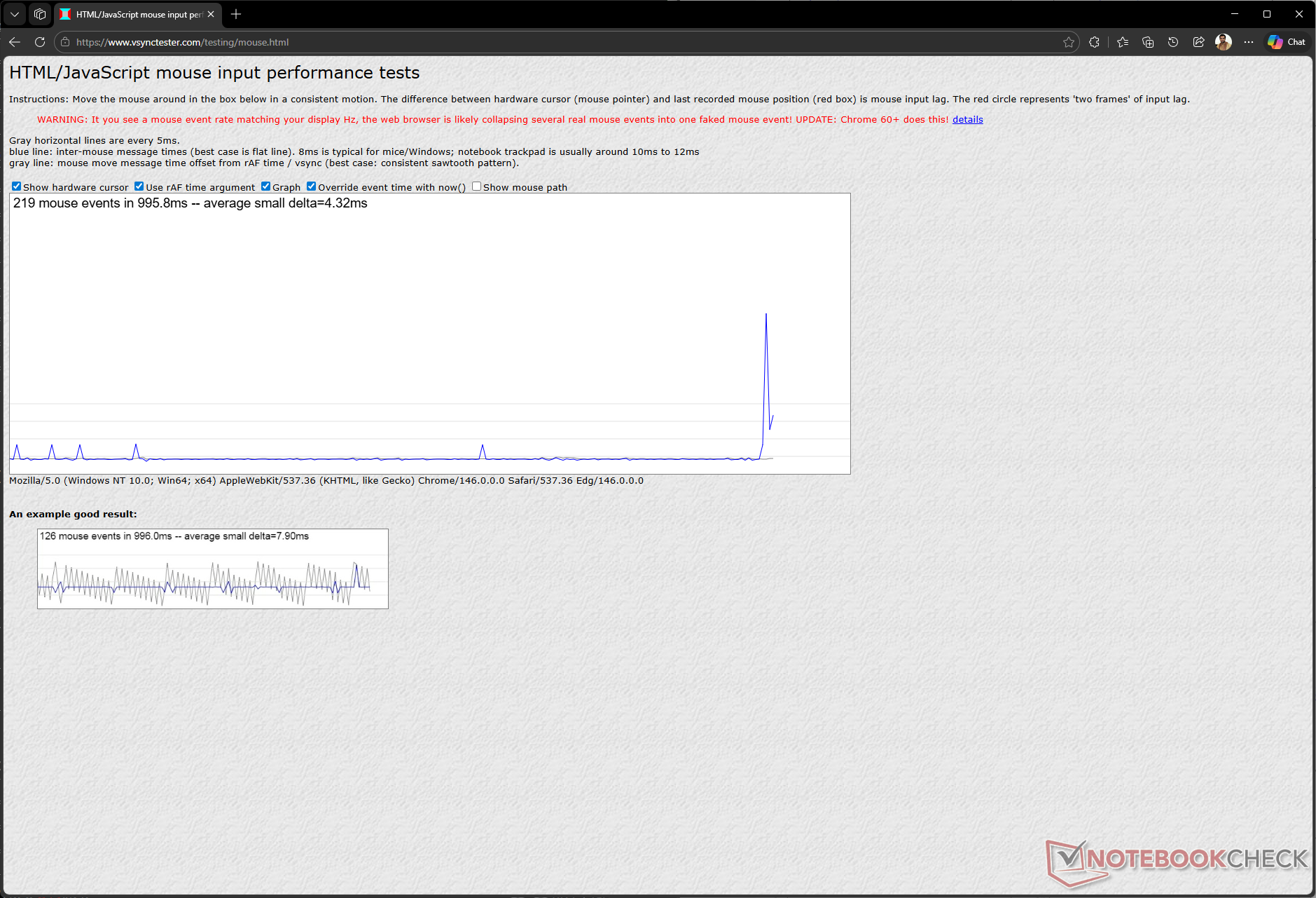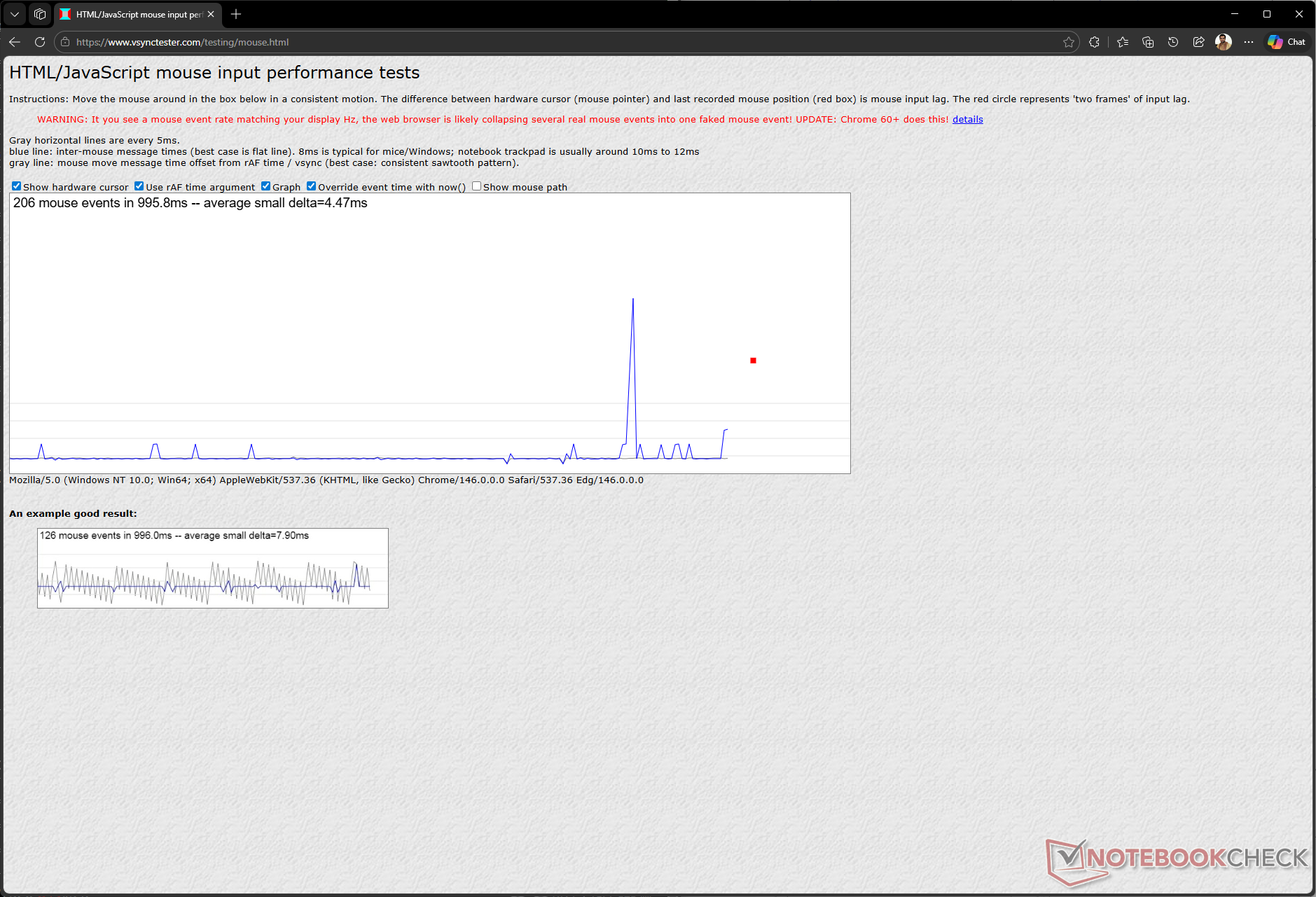 Aunque se producen algunas caídas de frecuencia, especialmente a DPI más altos, no afectaron al juego práctico porque las caídas suelen durar menos de 40 ms, y los movimientos del ratón en el mundo real son más aleatorios y a distancias más cortas.