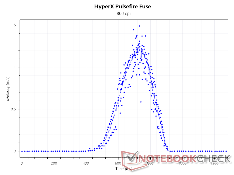 Medimos la variación entre los PPP fijados y los PPP medidos moviendo el Pulsefire Fuse Wireless a través de una distancia fija de 10 cm. Las lecturas de PPP se registraron por triplicado con el software MouseTester Reloaded.