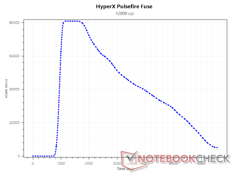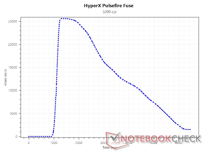 La aceleración y deceleración del Fuse Wireless hasta el origen mostraron curvas SRAV decentes, lo que indica que el ratón tiene inherentemente poca o ninguna aceleración del sensor que pudiera afectar negativamente al juego.