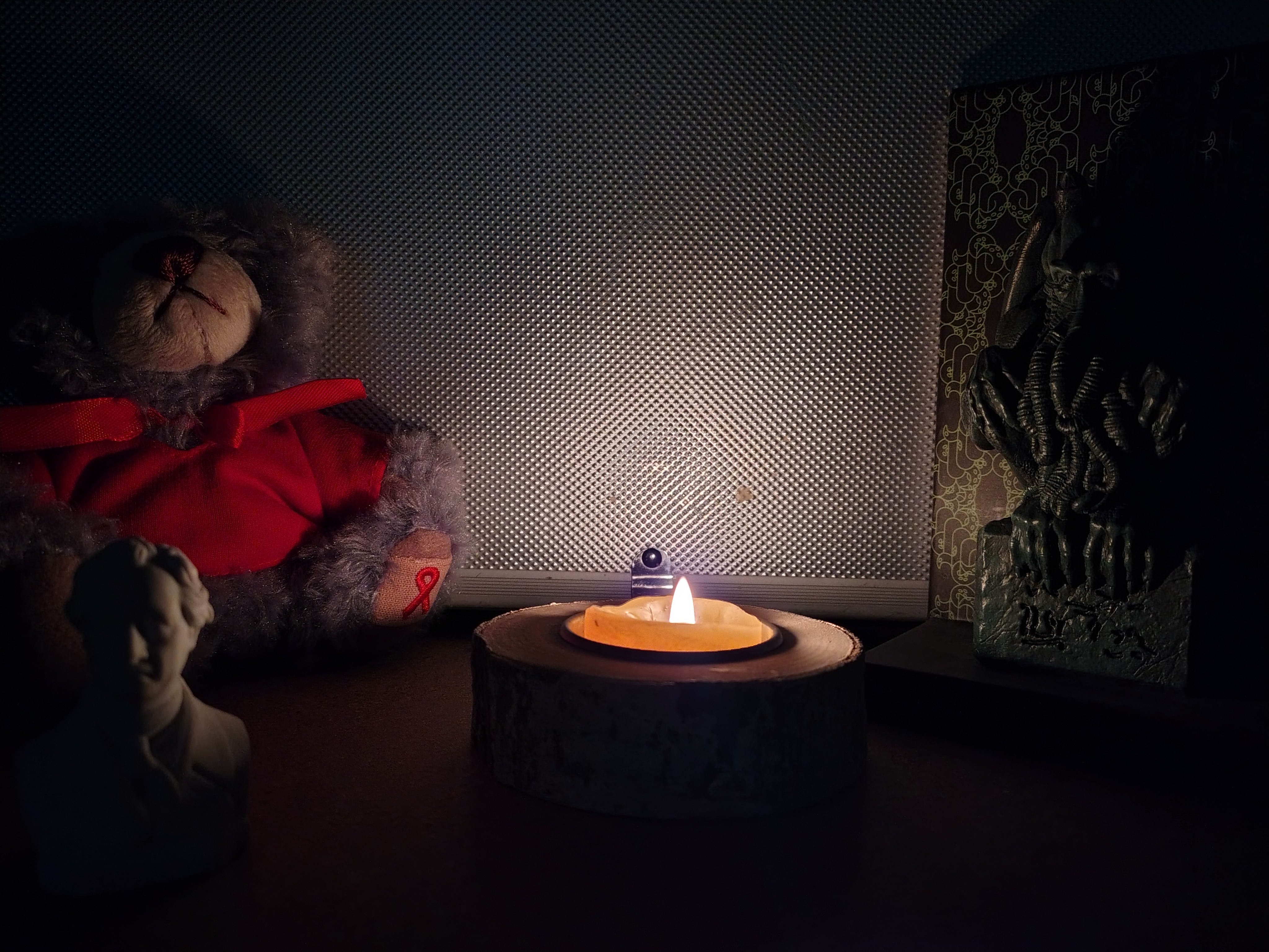 Con muy poca luz y altos contrastes, la llama de la vela se mostraba bien, pero apenas notamos detalle en las zonas más oscuras de la foto.