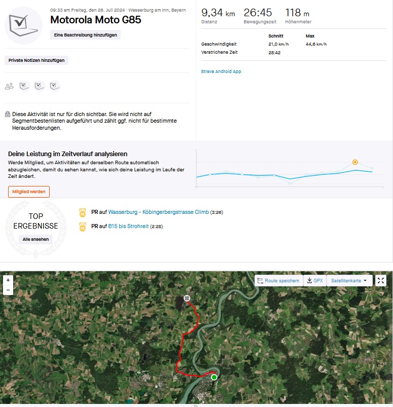Hicimos un viaje en bicicleta de 9,3 kilómetros para demostrar la precisión con la que navega el smartphone de Motorola en la vida cotidiana. Utilizamos el smartwatch Garmin Venu 2 como dispositivo de comparación.