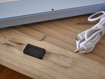 Junto al teclado, que se encuentra bajo una fina funda guardapolvo de plástico transparente y envuelto en una película de plástico, hay una pequeña caja que contiene los accesorios incluidos. Los accesorios consisten en una pequeña llave Allen, un cable USB tipo-A a tipo-C de goma blanca, liso pero grueso, y una herramienta combinada de extracción de teclas e interruptores. No hay interruptores ni teclas adicionales en la caja. Y lo que es más preocupante, la falta de interruptores adicionales significa que si alguno de los interruptores de serie del Tide65 falla, tendrá que comprar un juego de interruptores completamente nuevo. Epomaker no parece vender los interruptores Lemon como producto independiente, pero los interruptores Epomaker Zebra cuestan 19,99 dólares por 100 interruptores en Amazon.