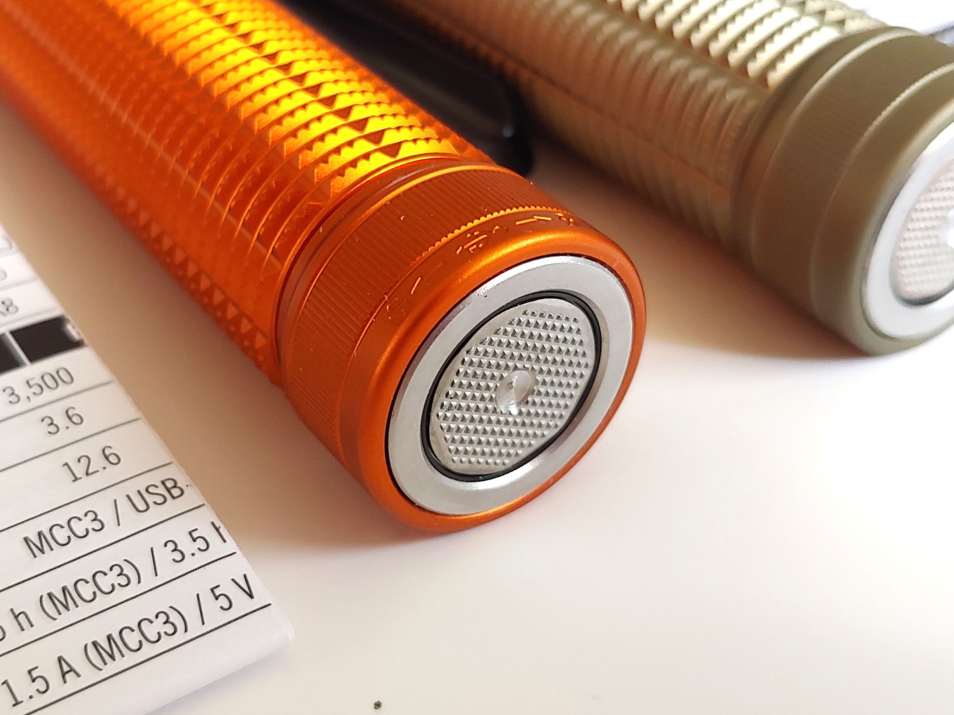 Las linternas Olight Batons presentan un cuerpo de aluminio estriado con un interruptor lateral y otro trasero. En el lateral hay un clip metálico que permite enganchar las linternas Baton a la ropa y a las mochilas.