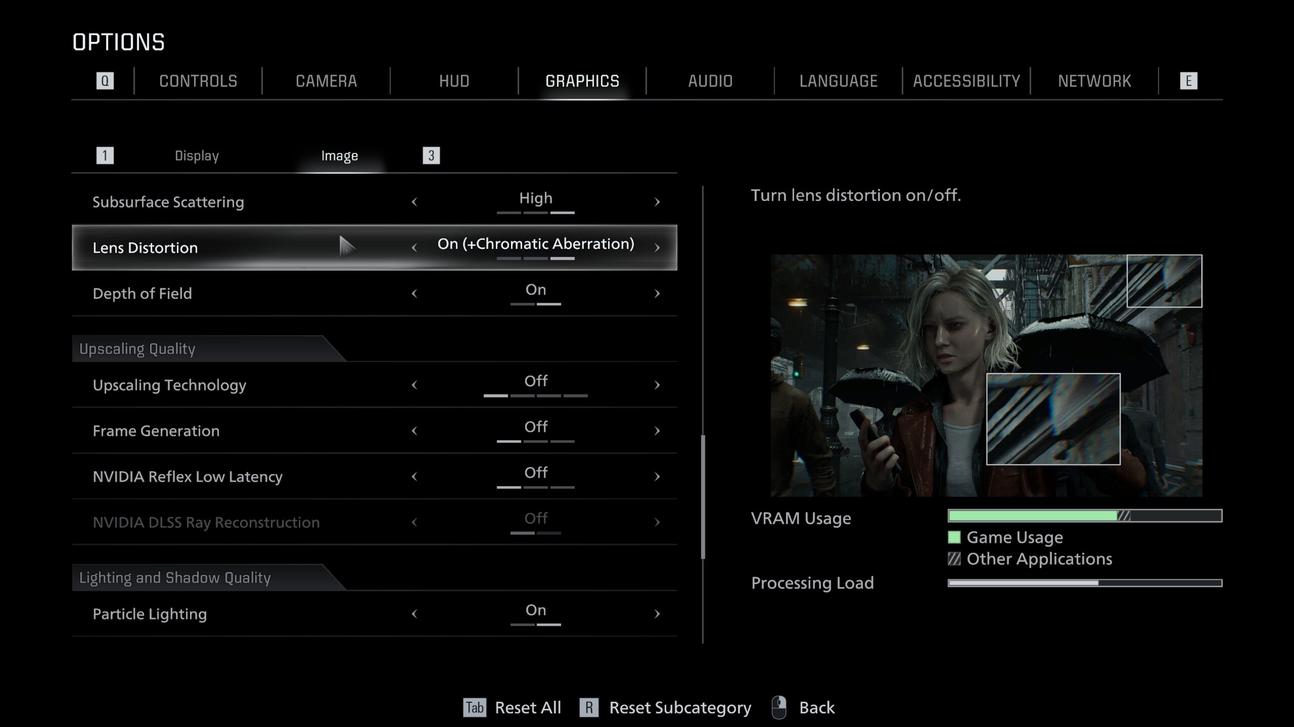 Resident Evil Requiem está construido sobre el motor RE Engine interno de Capcom, que está repleto de características modernas. El detalladísimo menú de gráficos está dividido en las pestañas Pantalla e Imagen, como se muestra en las capturas de pantalla. No sólo incluye opciones de ampliación, con soporte para DLSS, FSR y generación de fotogramas, sino también conmutadores para el trazado de rayos y el trazado de trayectorias.