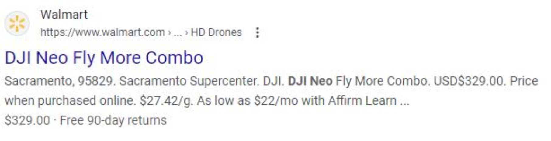 Sin embargo, no había nada que sugiriera que DJI tenía intención de lanzar el Neo en breve. En cambio, las publicaciones iniciales de documentos de la FCC suelen aparecer meses antes de que se produzca un lanzamiento oficial. Sin embargo, el minorista estadounidense Walmart sugiere lo contrario. Probablemente listado demasiado pronto, el listado de Walmart no sólo confirma el lanzamiento inminente del DJI Neo sino también el precio de lo que podría ser uno de sus SKU más populares.