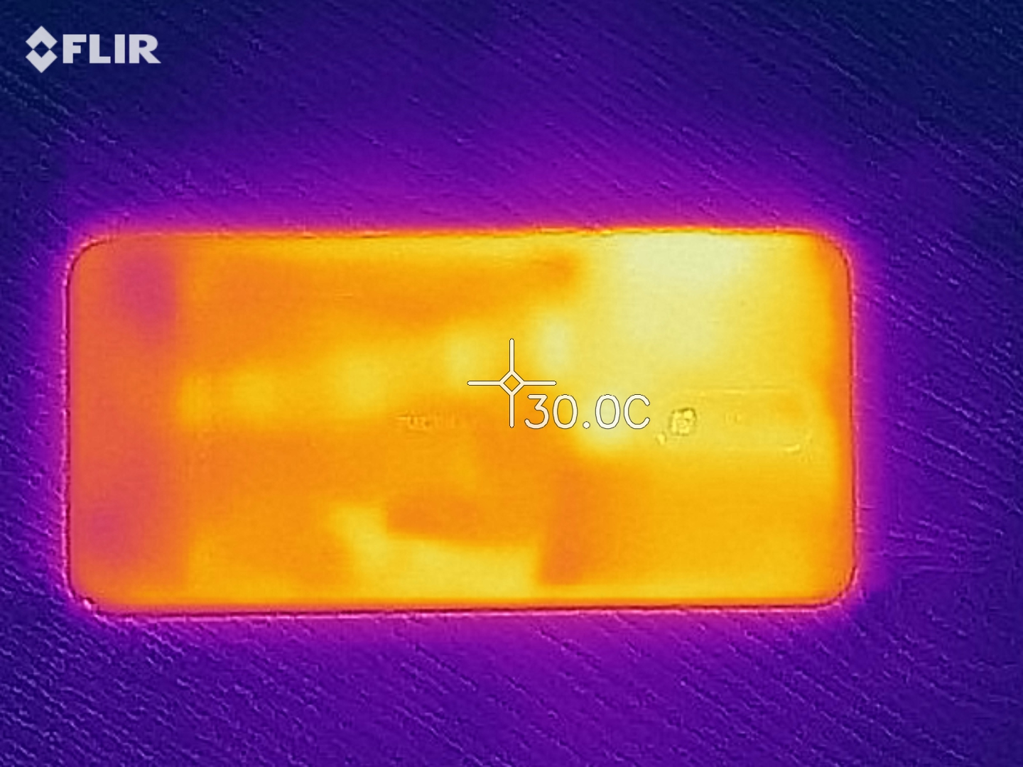 (+) En reposo, la temperatura media de la parte superior es de 31.3 °C / 88# F, frente a la media del dispositivo de 32.9 °C / 91 F.