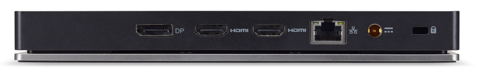 Los dos puertos USB tipo A funcionan según el estándar USB 3.2 Gen 1. Están unidos por un puerto Thunderbolt 3 que soporta la entrega de energía y el DisplayPort a través del USB-C. Junto con la salida HDMI, el TravelMate ofrece dos salidas de video. El puerto Thunderbolt 3 también ofrece la posibilidad de conectar una estación de acoplamiento o una GPU externa.