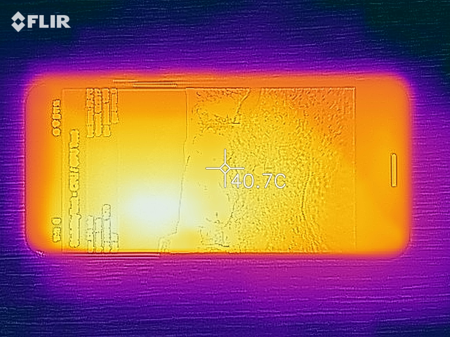 (+) La temperatura máxima en la parte superior es de 35.5 °C / 96 F, frente a la media de 35.2 °C / 95 F, que oscila entre 21.9 y 247 °C para la clase Smartphone.